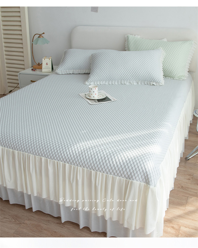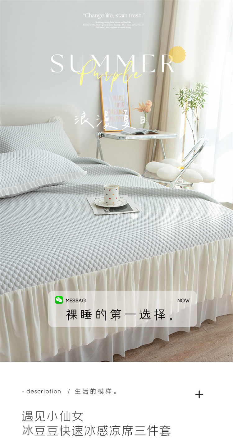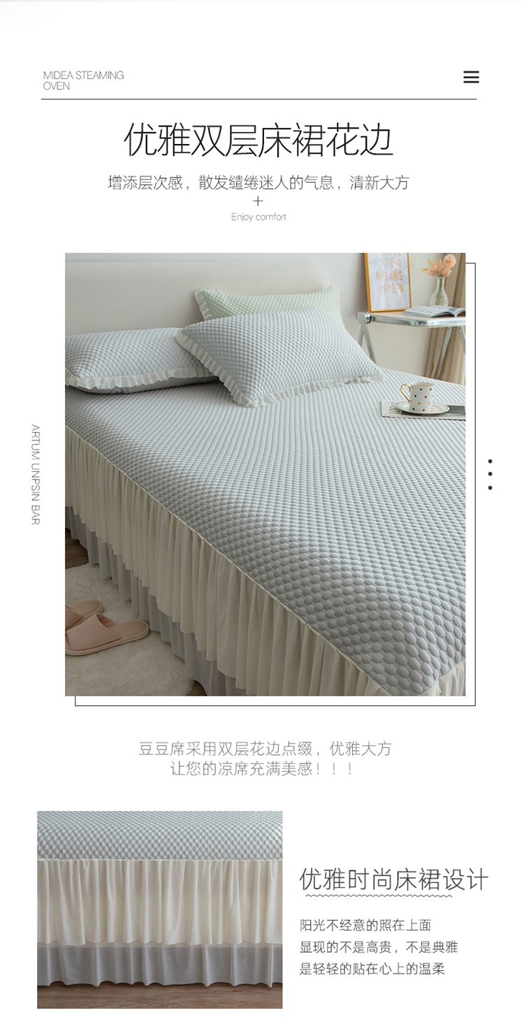 商品名称:梵克保罗 2025新款蕾丝花边床单款凉豆豆快速冰感凉席三件套 豆豆浅绿