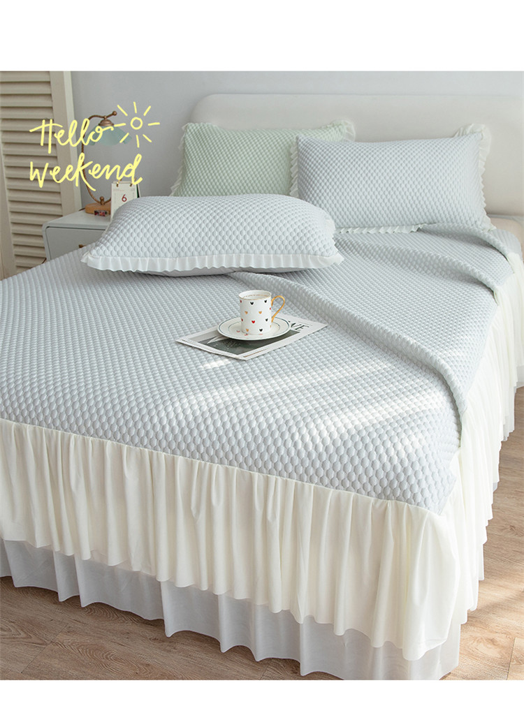 梵克保罗 2025新款蕾丝花边床单款凉豆豆快速冰感凉席三件套 豆豆浅绿