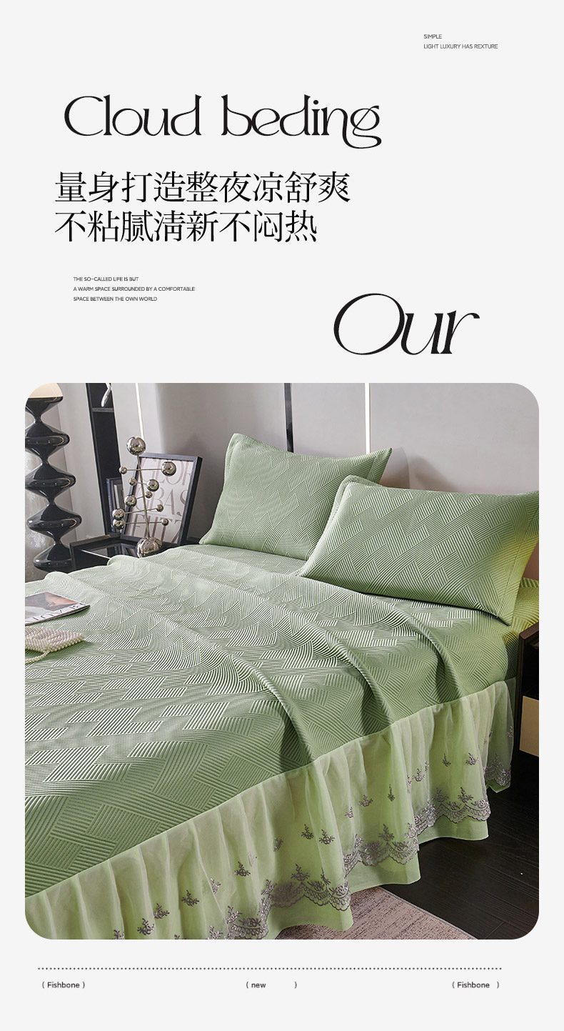 商品名称:梵克保罗 2025新款7A抗菌母婴级纯乙纶PE刺绣凉感丝豆豆席床单款 肌理纹-水绿