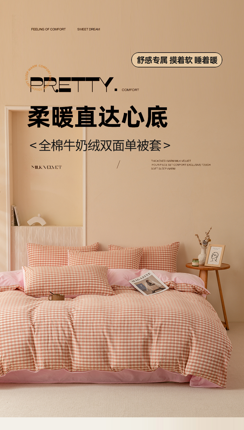 • 91家纺网 家纺一手货源 找家纺 雯雨家纺 2025新款全棉加牛奶绒宝宝绒一面棉一面绒单件被套单品被套 棉绒-粉小格