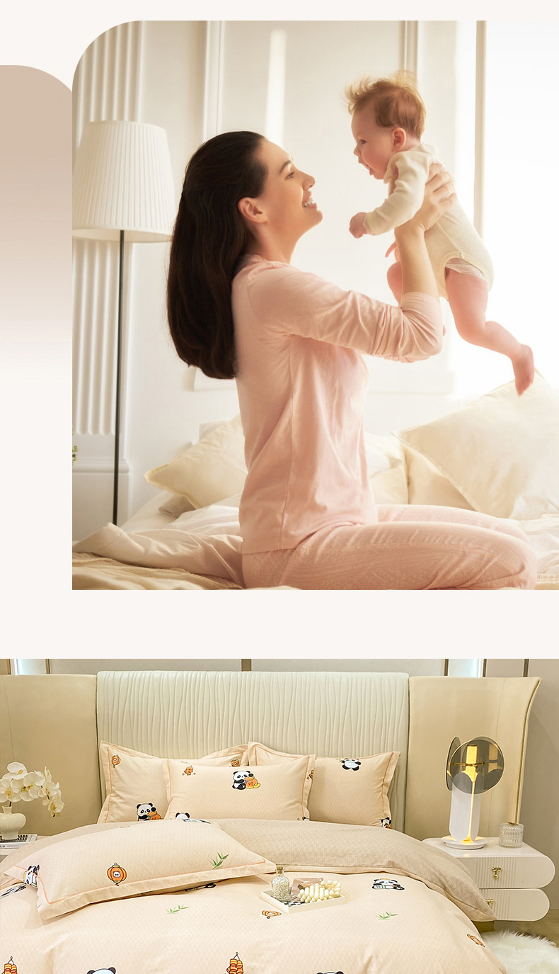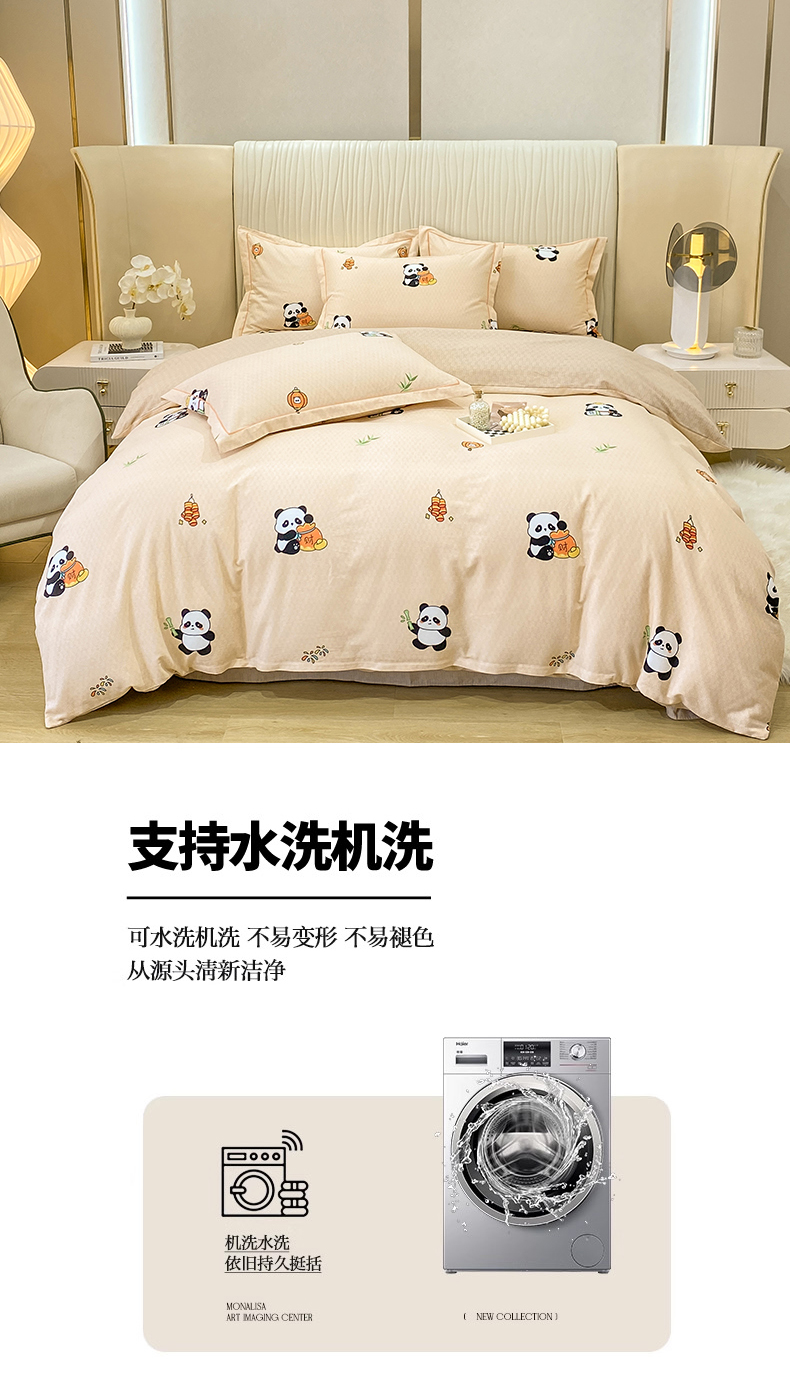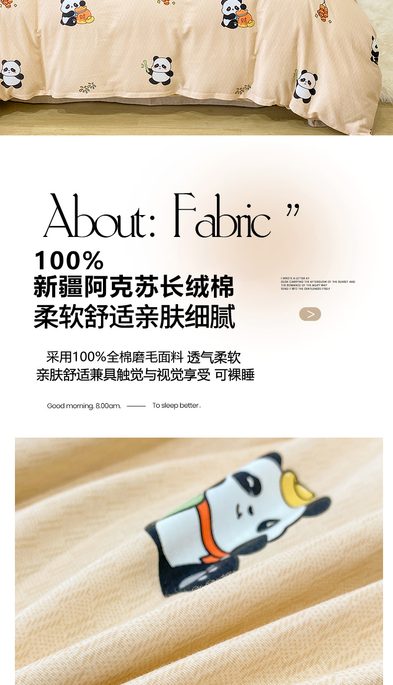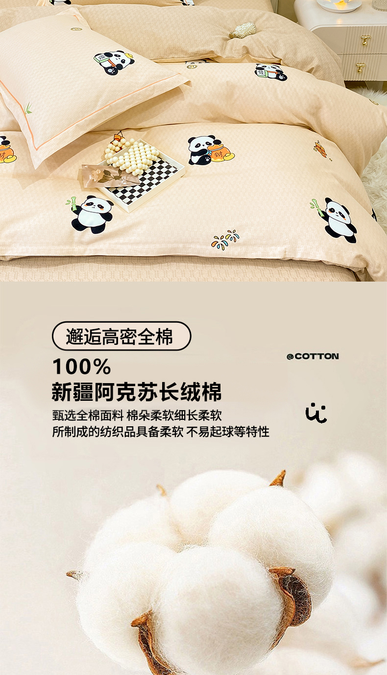 红日子纺织品 2025新款100%全棉纯棉磨毛四件套 快乐熊猫