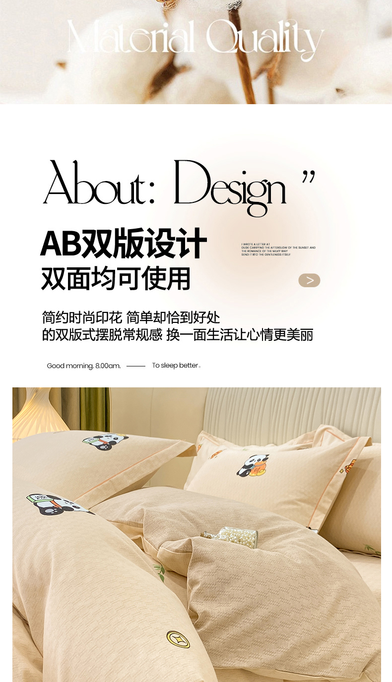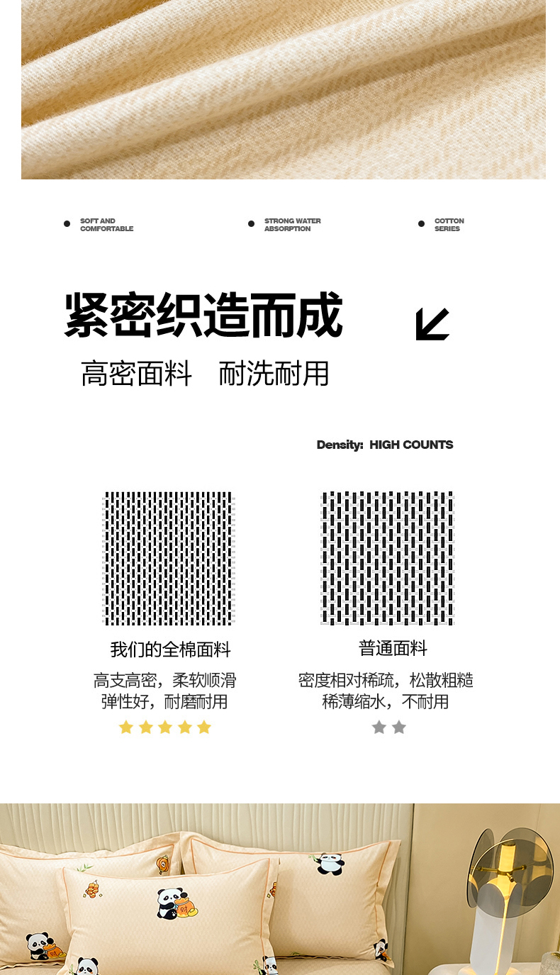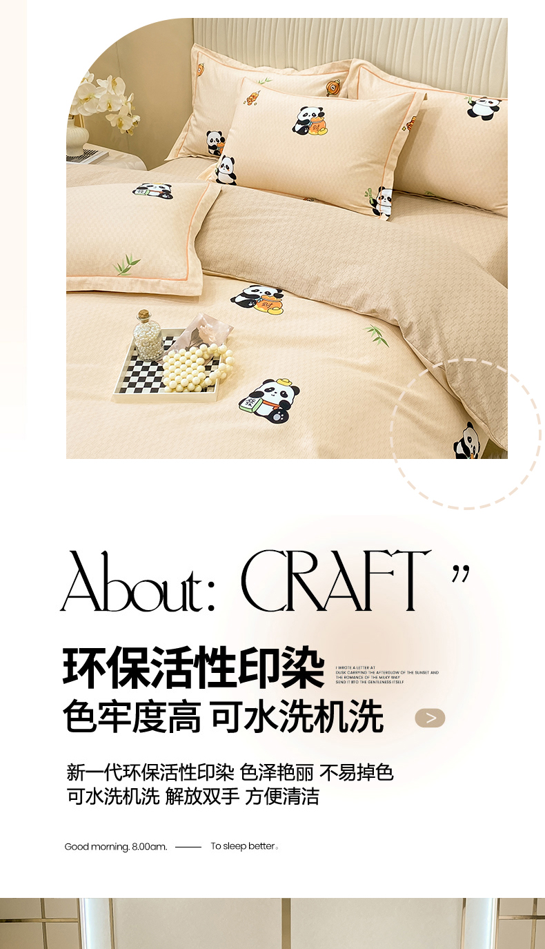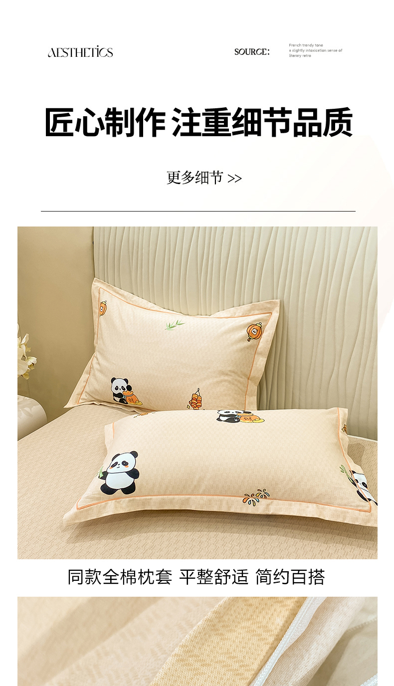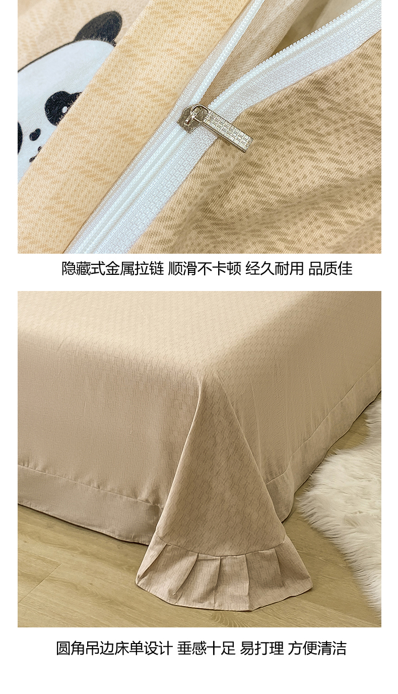 红日子纺织品 2025新款100%全棉纯棉磨毛四件套 快乐熊猫