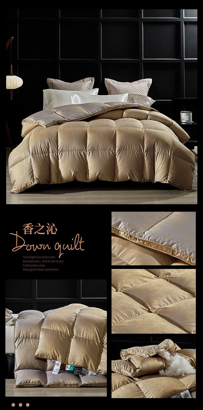 (总)暖羽屋羽绒馆 2025新款白鹅绒丝被芯 羽绒丝被 羽毛被子 婚庆羽绒被 双人加厚冬被,恒运莱 金-角度一,恒运莱 金-角度二