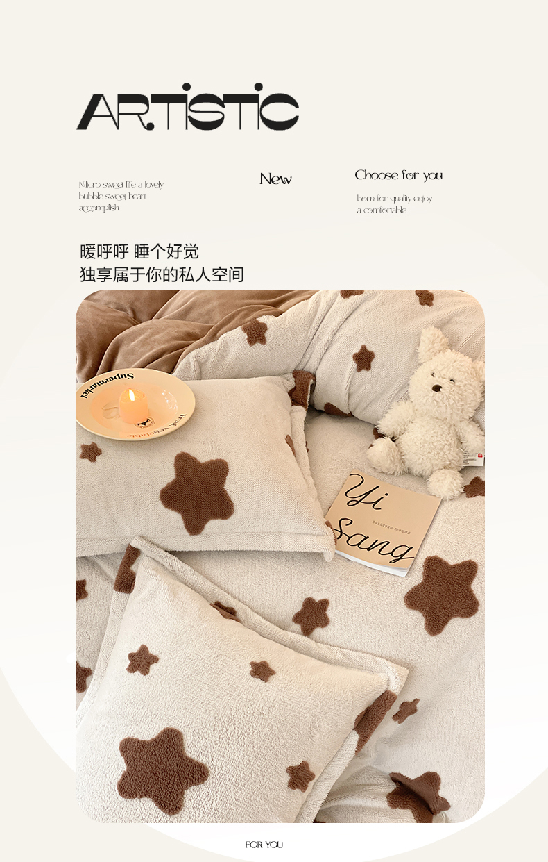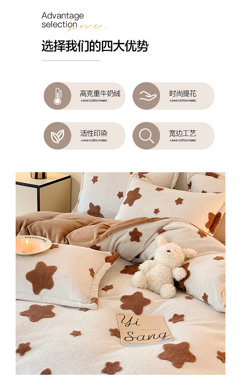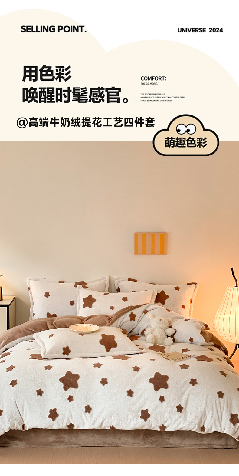 当前位置: 91家纺网 > 商品网购 > 床品套件 > 四件套 > 牛奶绒四件套 > 川悦生活 2025新款A类300克高克重提花牛奶绒四件套 星星愿望