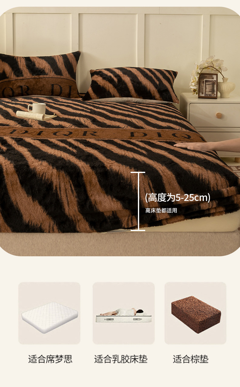 眠势力 2025新款兔毛绒床笠单件冬季加绒冬季保暖保护套全包防尘床垫罩-美拉德系列 蝶绒梦境【兔毛绒床笠】