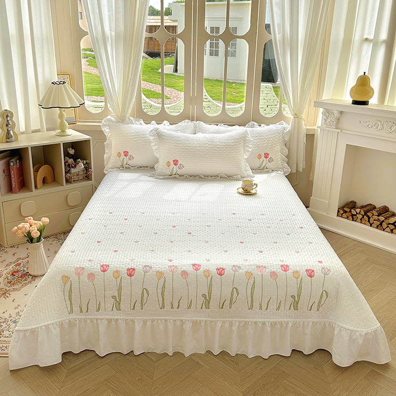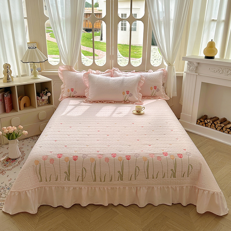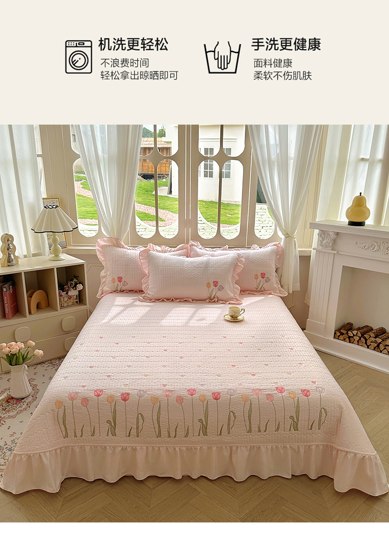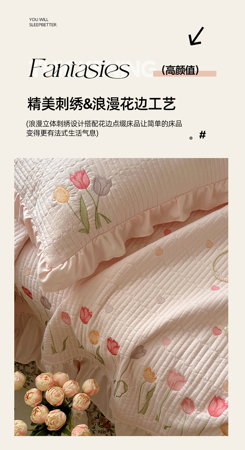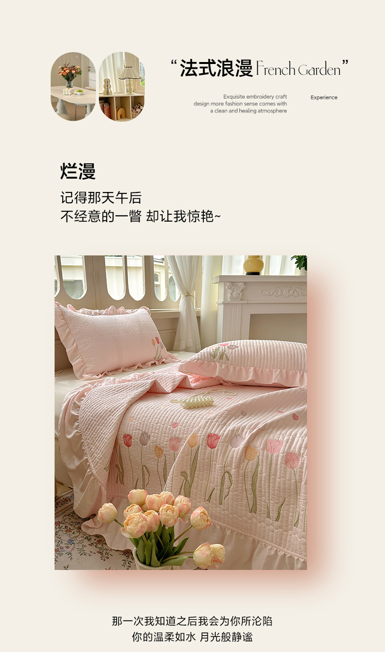 (总)老K (原美阁)2025新款高端精品刺绣水洗棉床盖三件套郁金香系