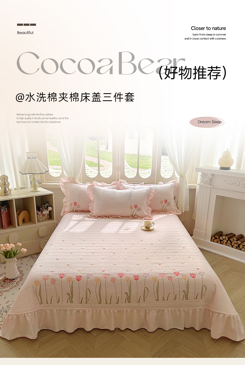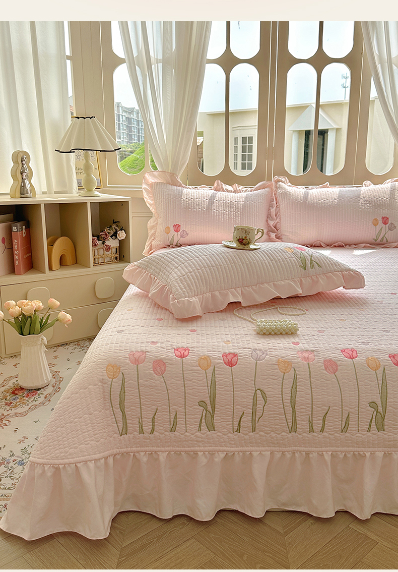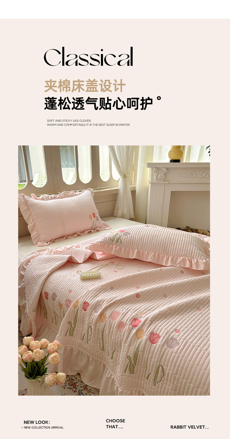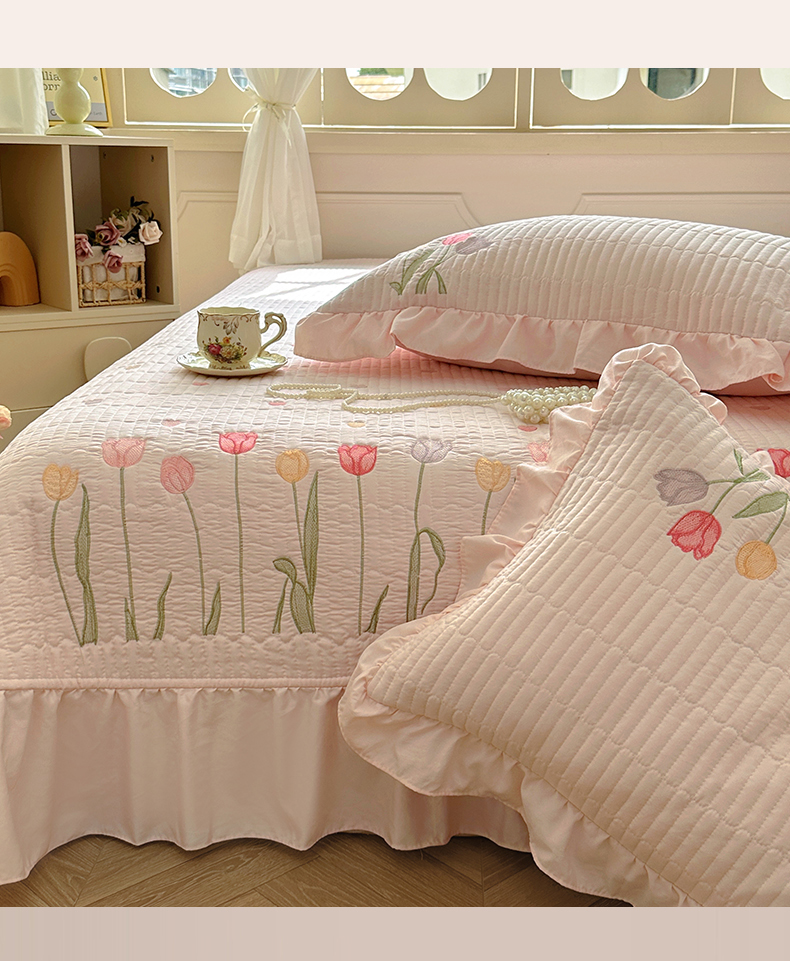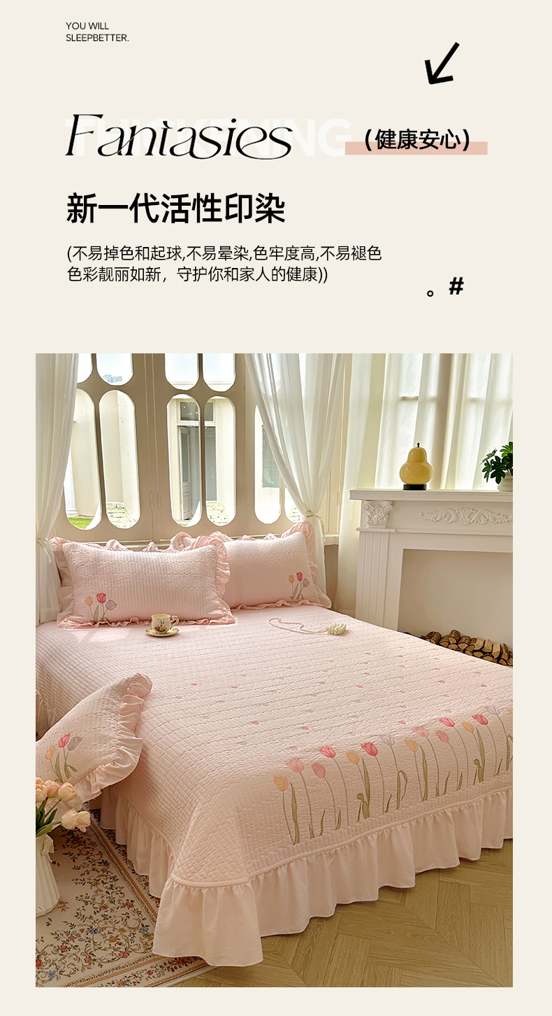(总)老K (原美阁)2025新款高端精品刺绣水洗棉床盖三件套郁金香系