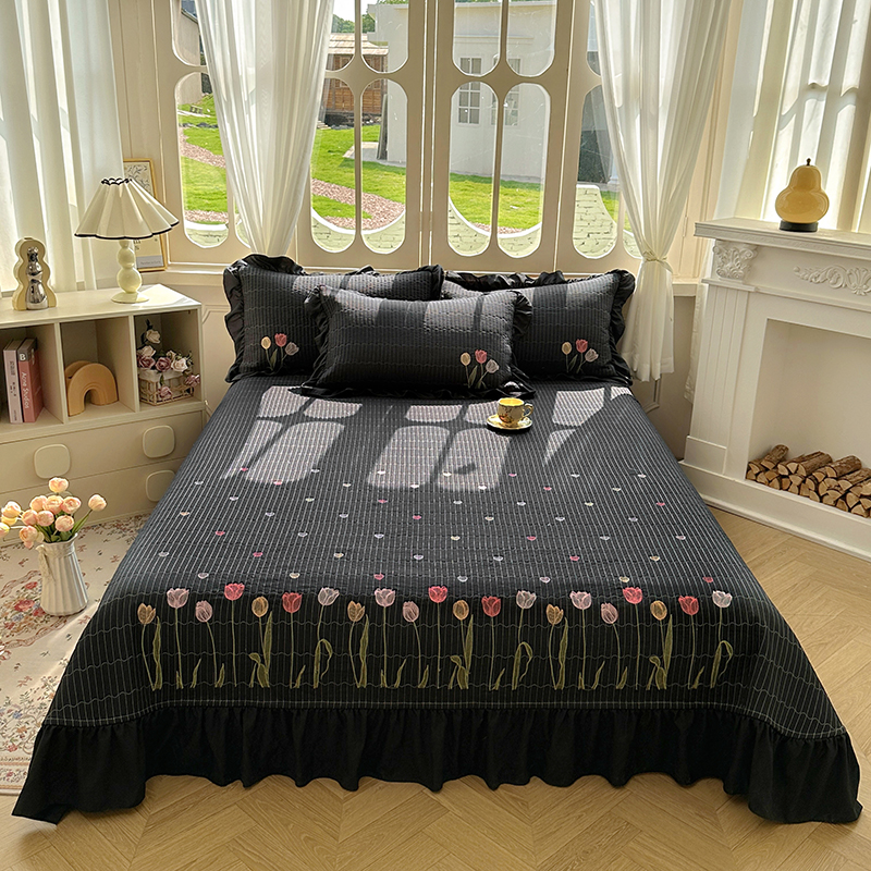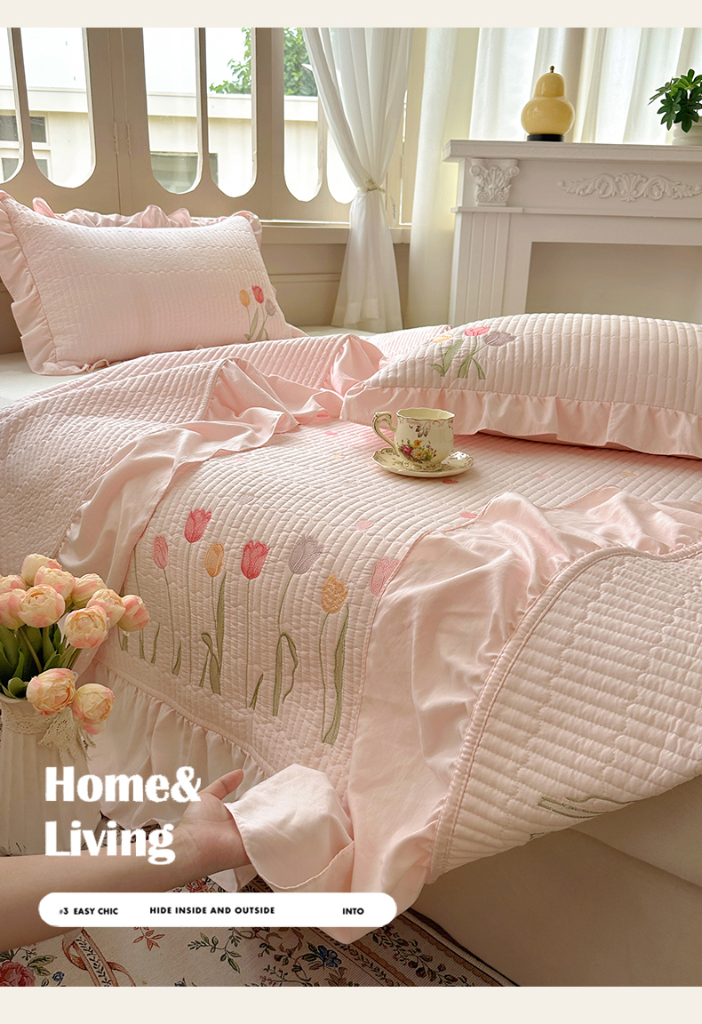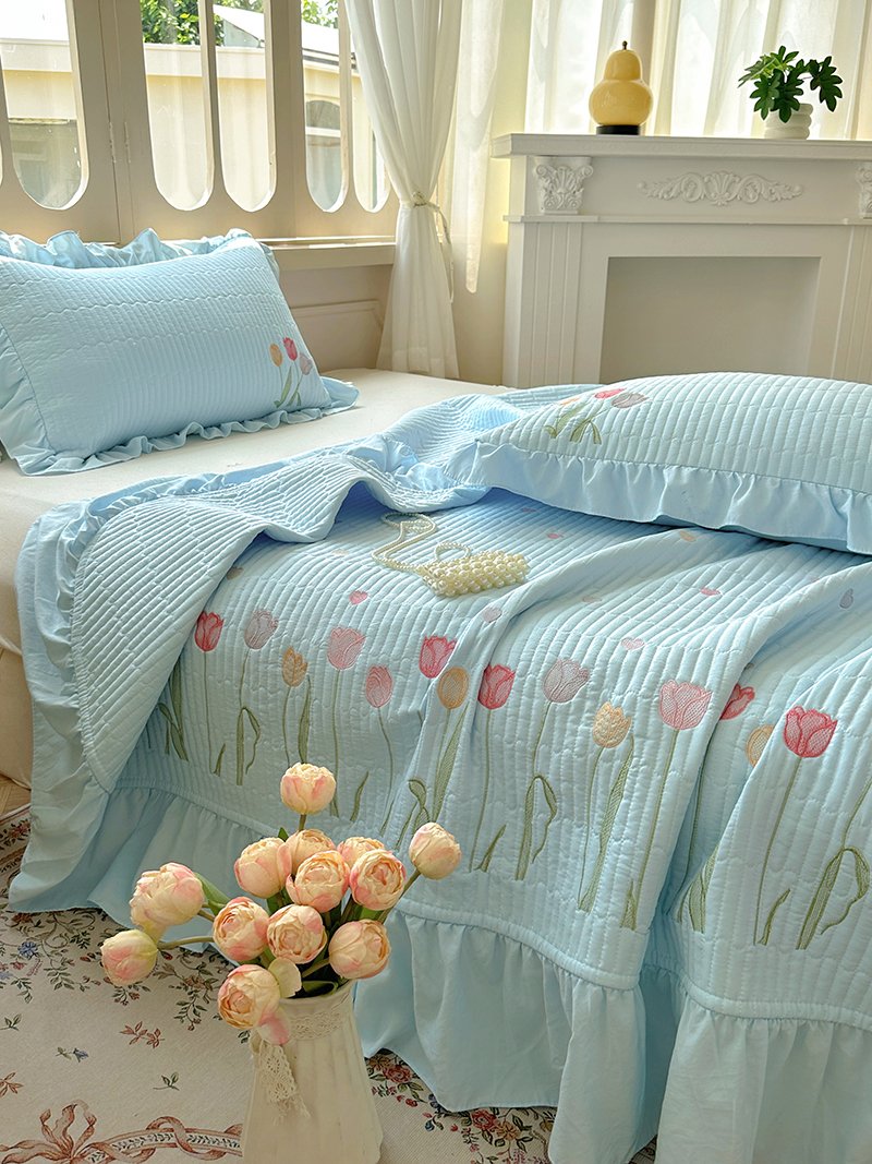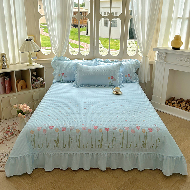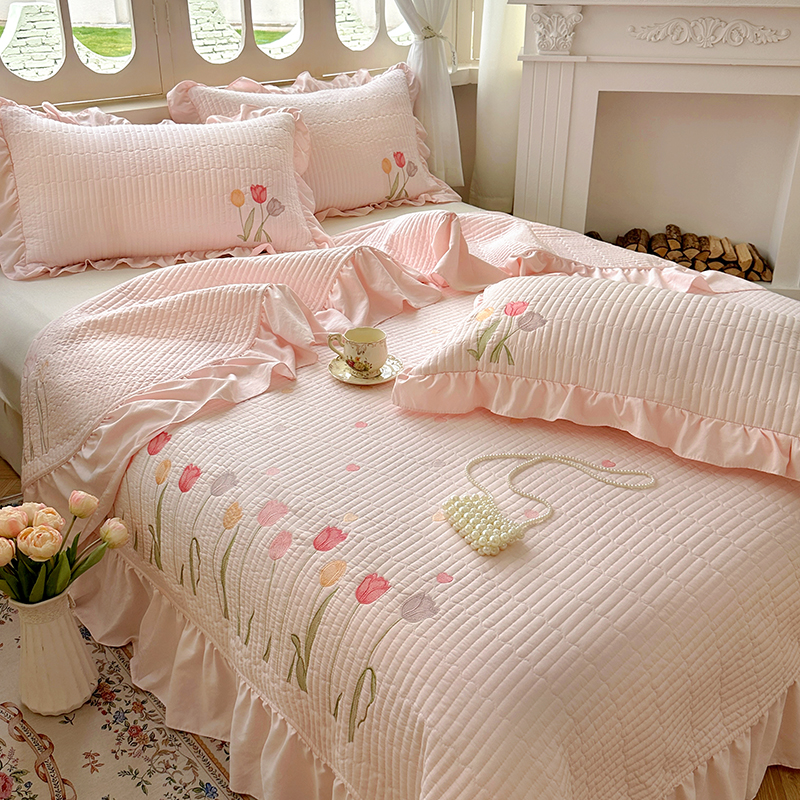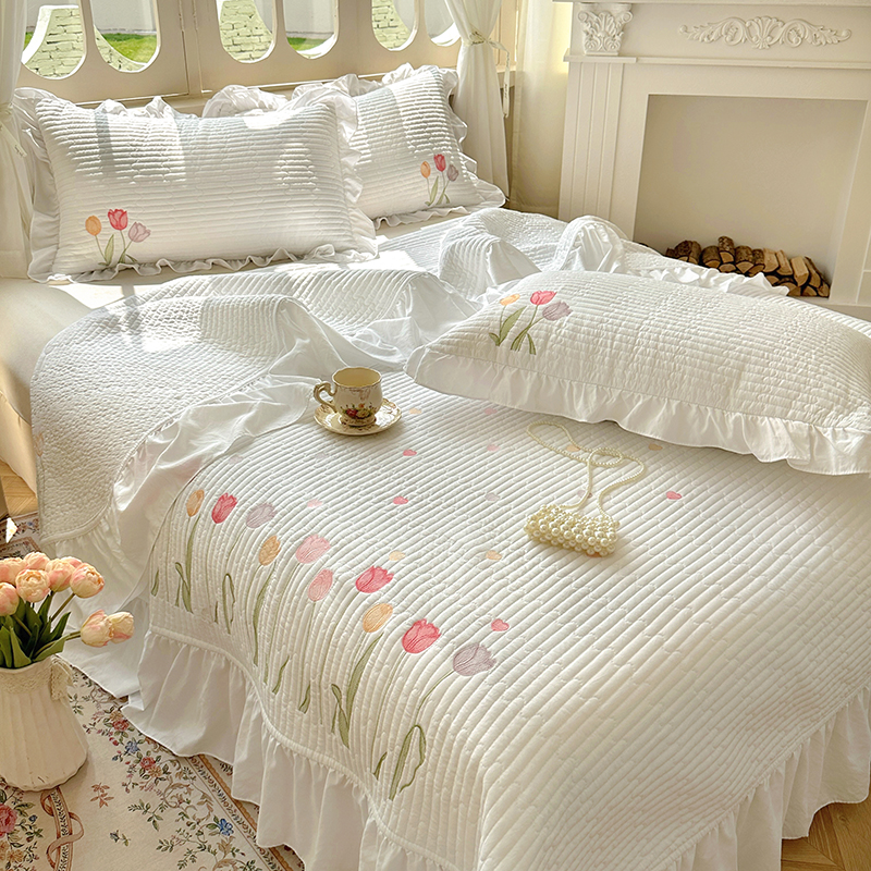 (总)老K (原美阁)2025新款高端精品刺绣水洗棉床盖三件套郁金香系