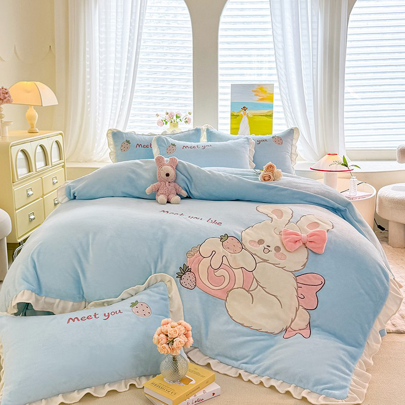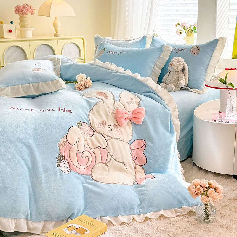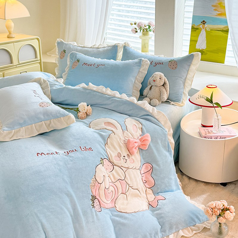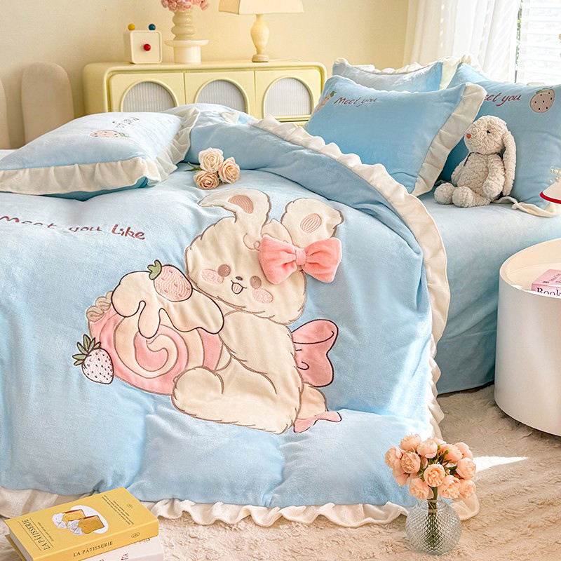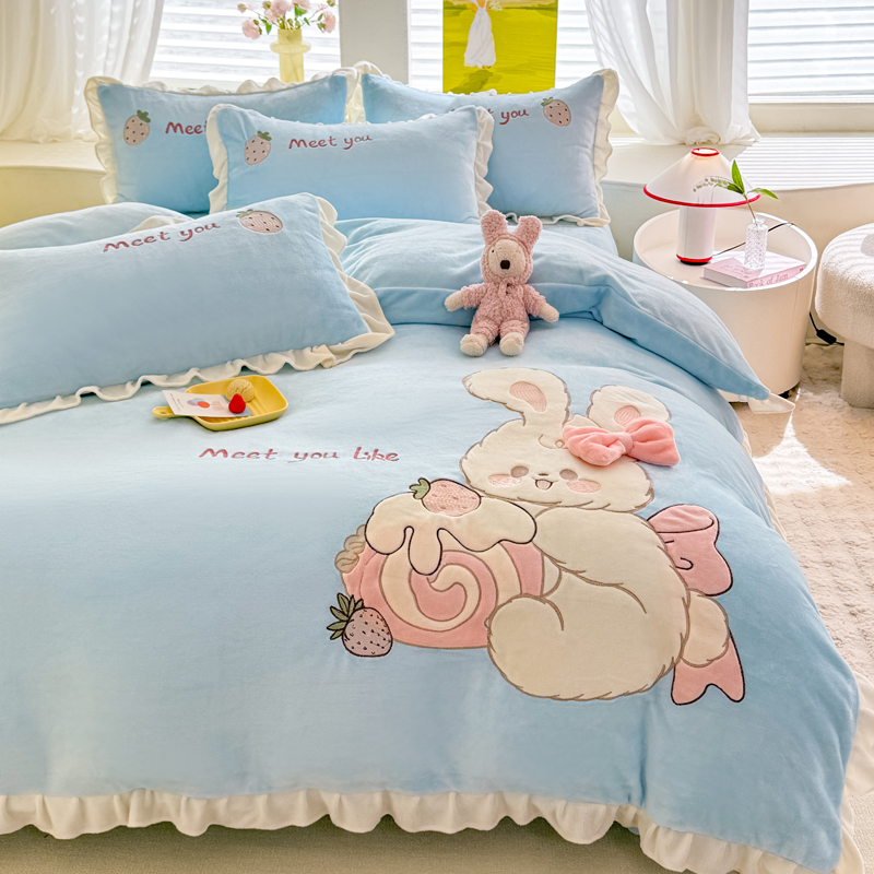 漫布云2025秋冬新品大版卡通230g牛奶绒兔毛贴布绣婴儿绒四件套--可爱兔系列 可爱兔-婴儿蓝
