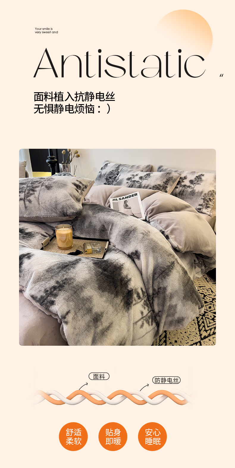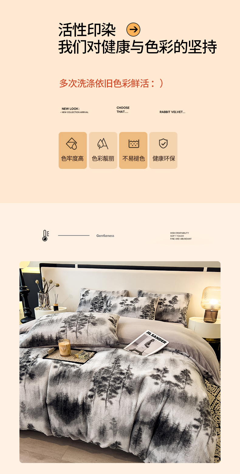 当前位置: 91家纺网 > 商品网购 > 床品套件 > 四件套 > 其它四件套 > 倾慕家纺 2026新款高克重兔毛绒保暖四件套 疏影灰
