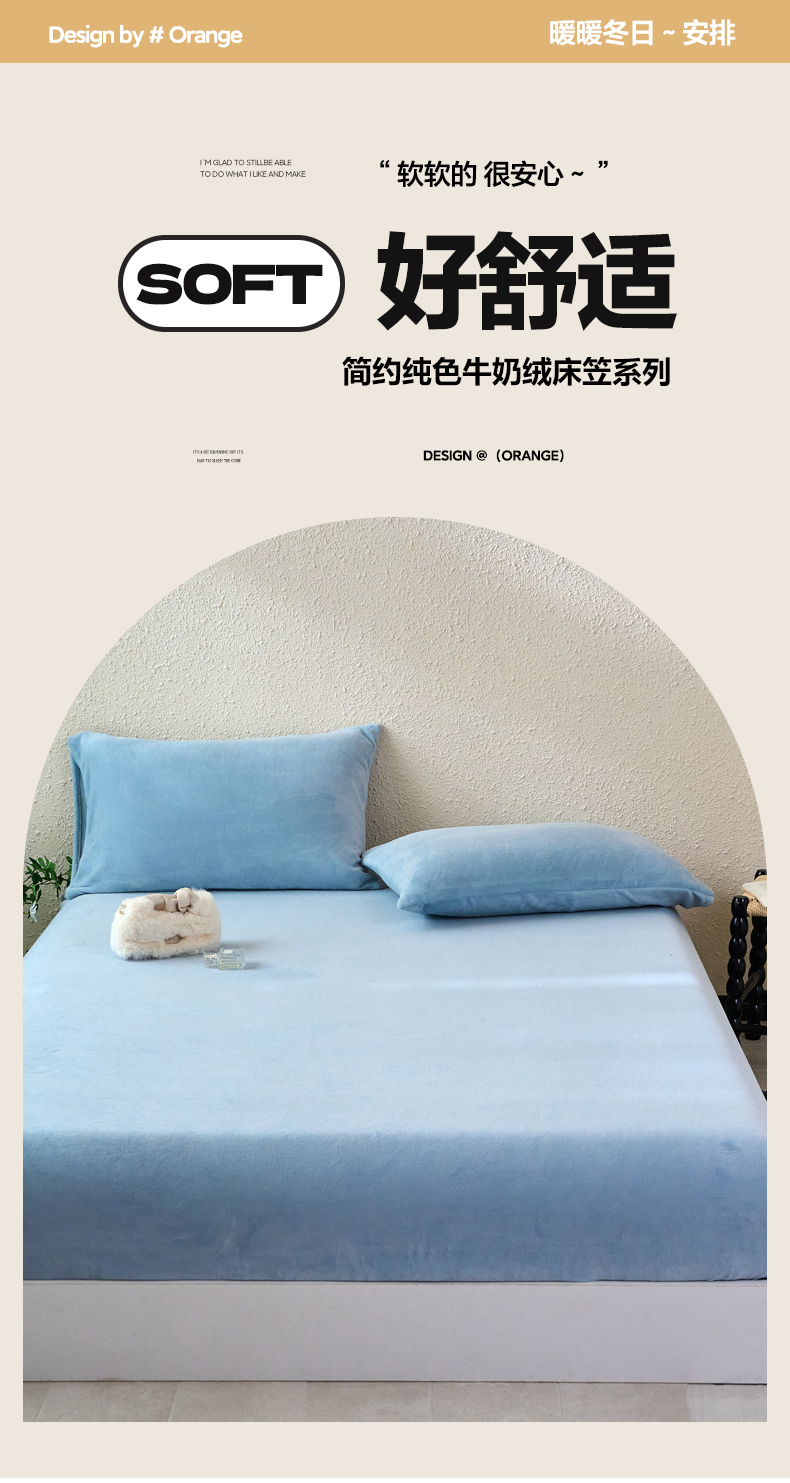 (总)兰紫橙家纺 2025新款简约纯色单面200克重牛奶绒床笠系列,宝石蓝,浅星蓝,绅士灰,深空黑,奶油驼,天空蓝,星柚粉,雏菊黄,淡彩绿,罗兰紫,奶昔白,摩卡棕