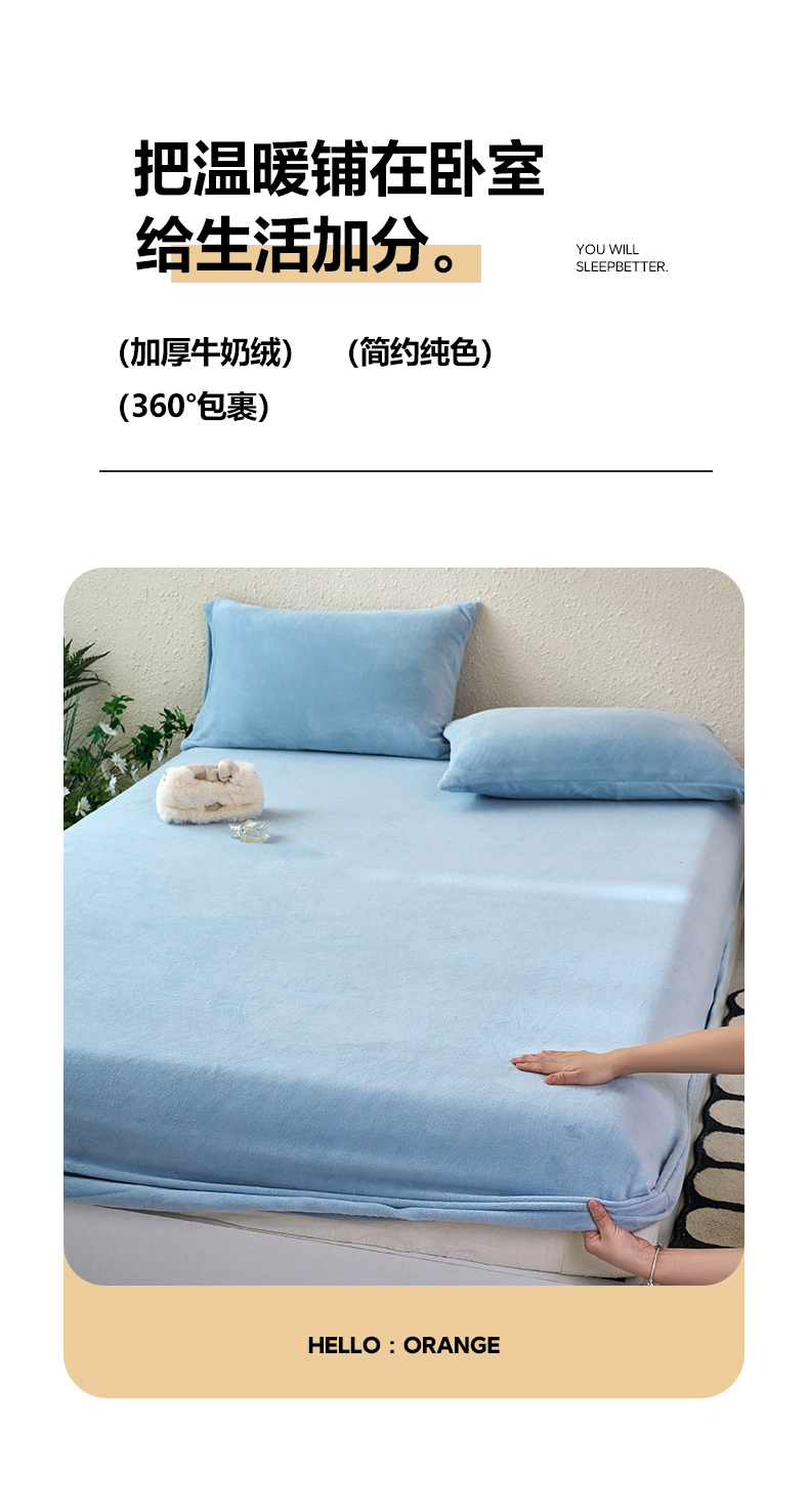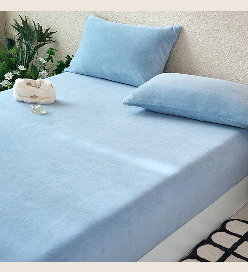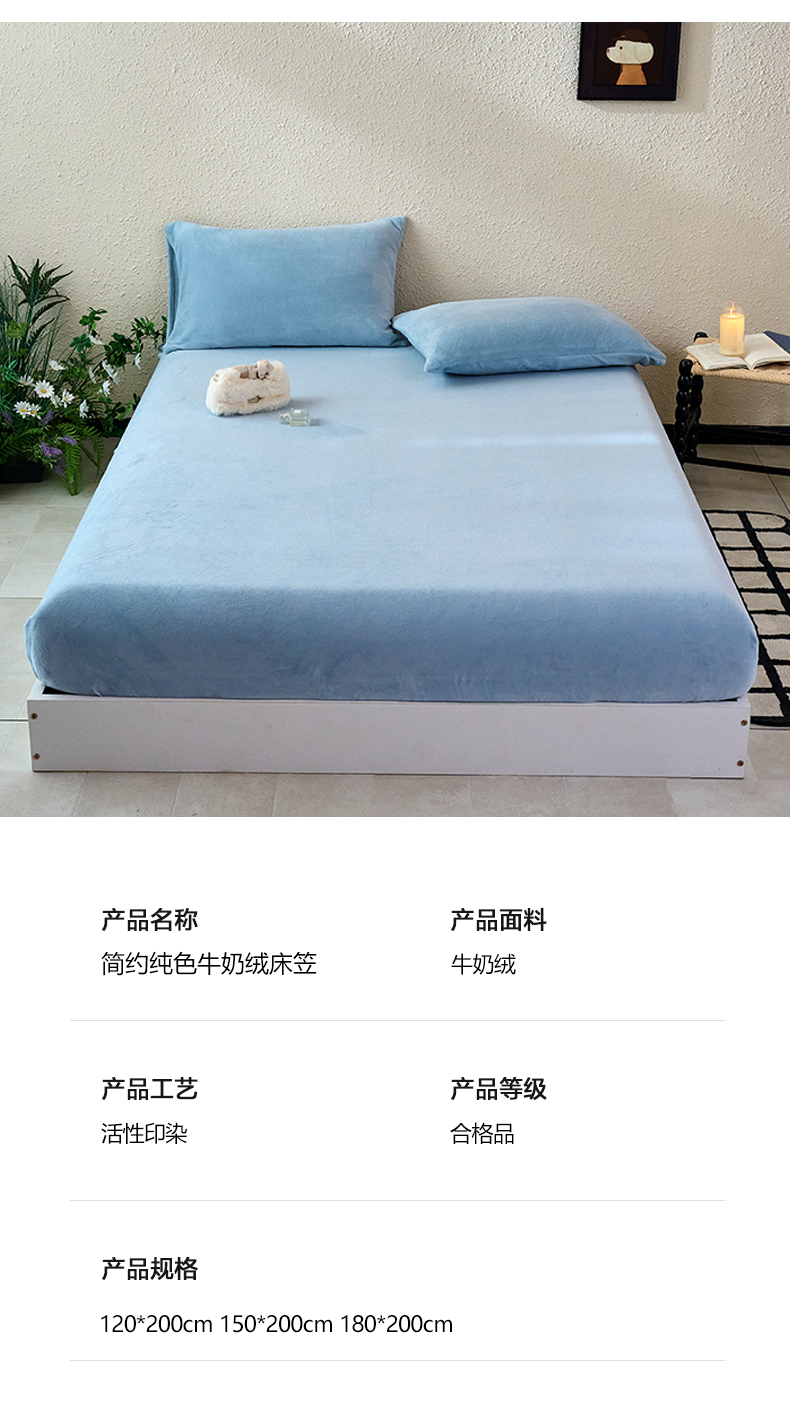 兰紫橙家纺 2025新款简约纯色牛奶绒床笠系列 天空蓝