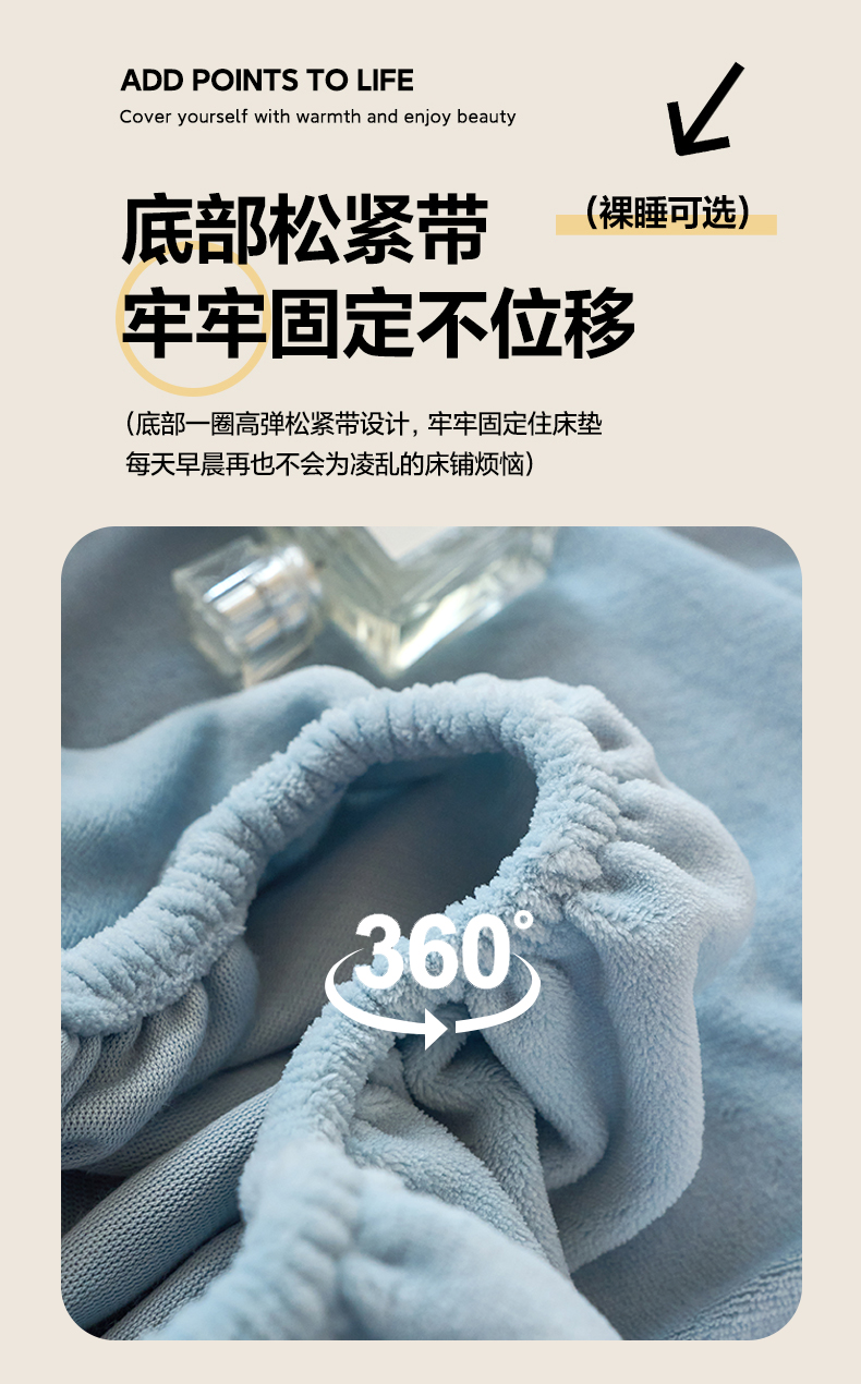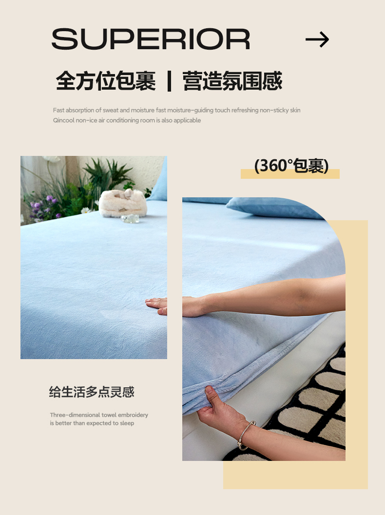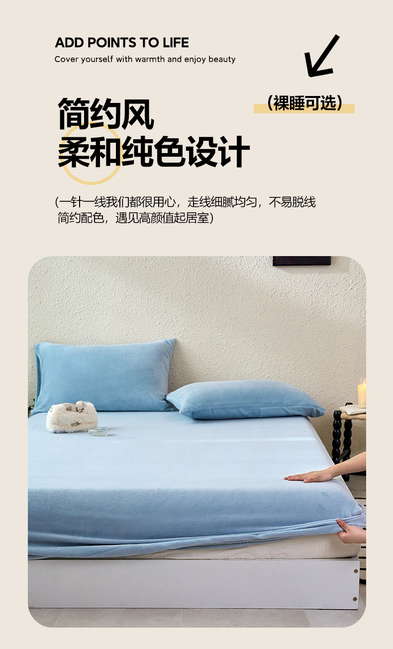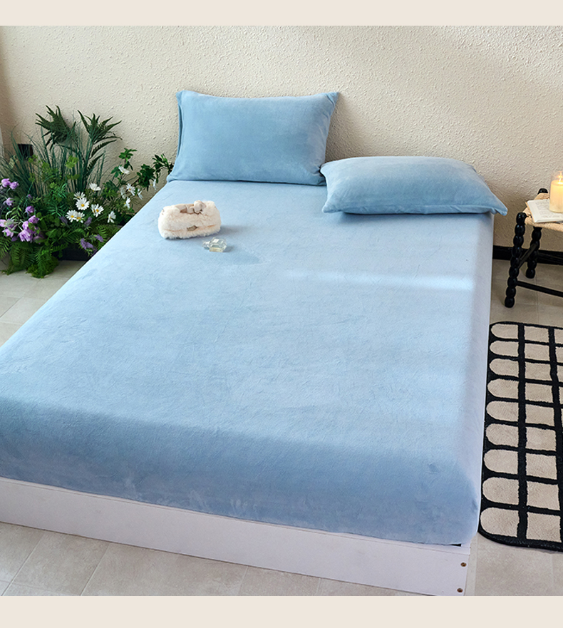 兰紫橙家纺 2025新款简约纯色牛奶绒床笠系列 天空蓝