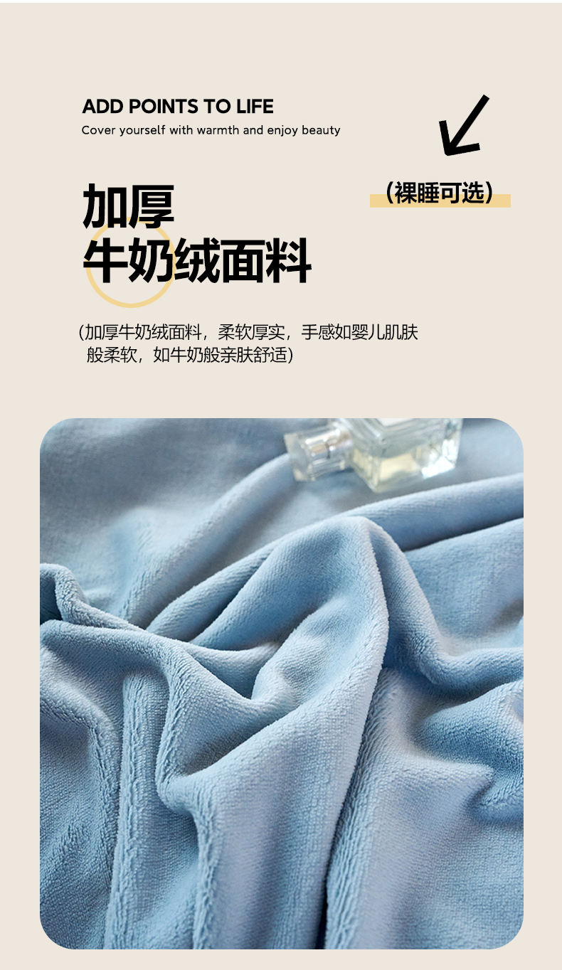 • 91家纺网 家纺一手货源 找家纺 兰紫橙家纺 2025新款简约纯色牛奶绒床笠系列 天空蓝