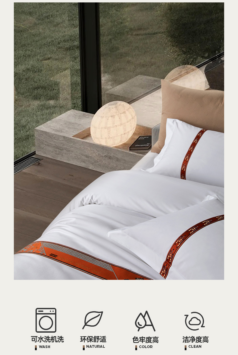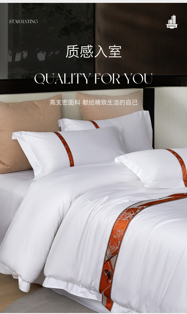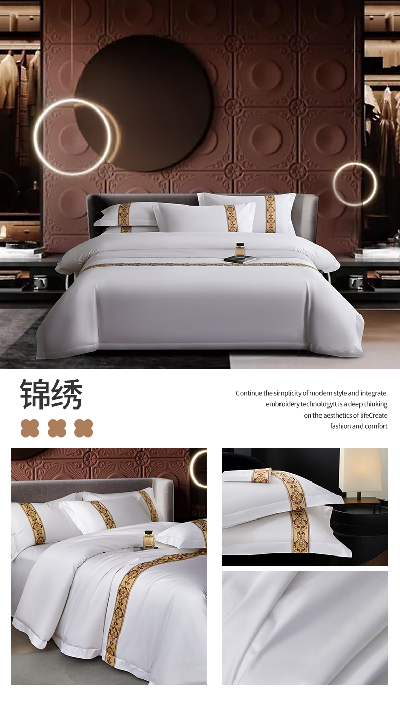 当前位置: 91家纺网 > 商品网购 > 床品套件 > 四件套 > 其它四件套 > 罗菲尼酒店用品 2025新款高仿棉织带款酒店宾馆四件套 马驹