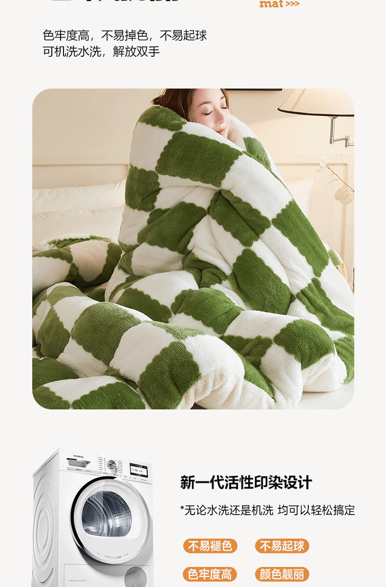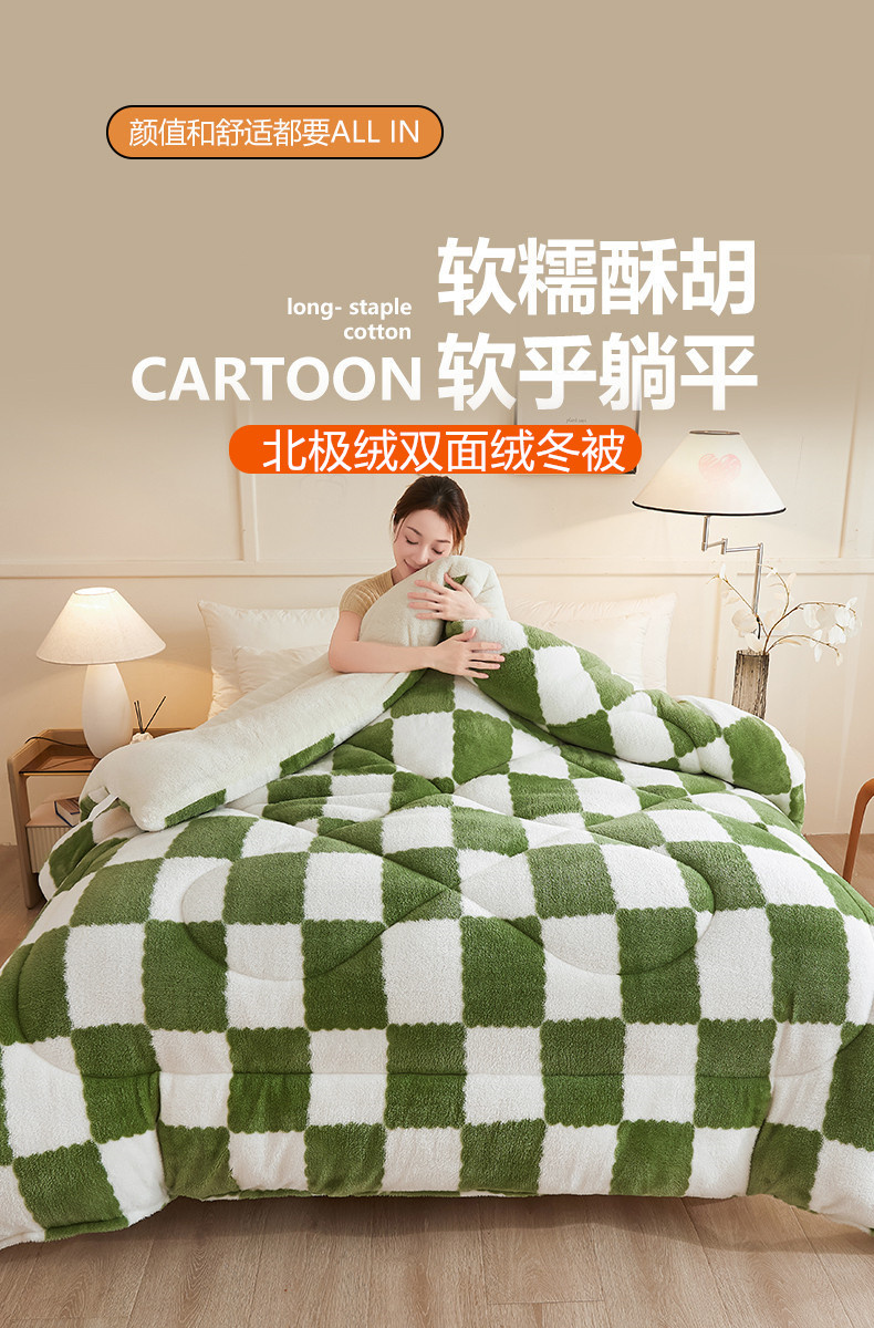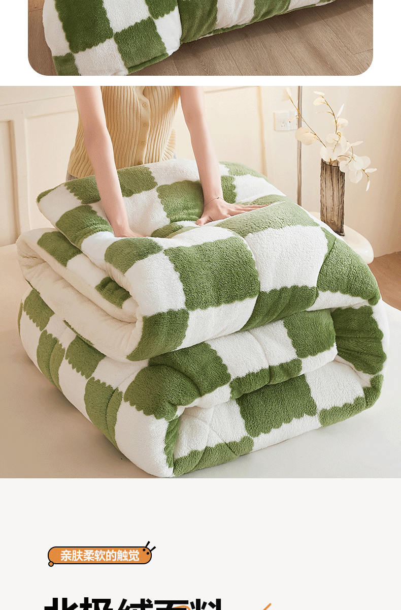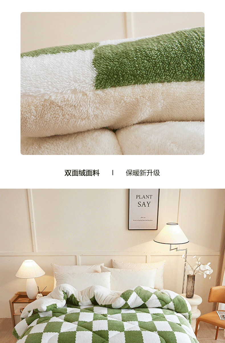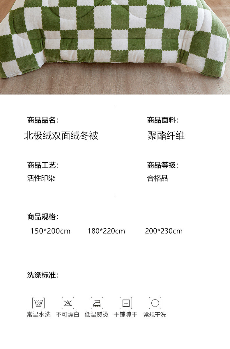 商品名称:爱屋及屋 2025新款北极绒双面绒牛奶绒棋盘格冬被被子被芯 棋盘-绿白格