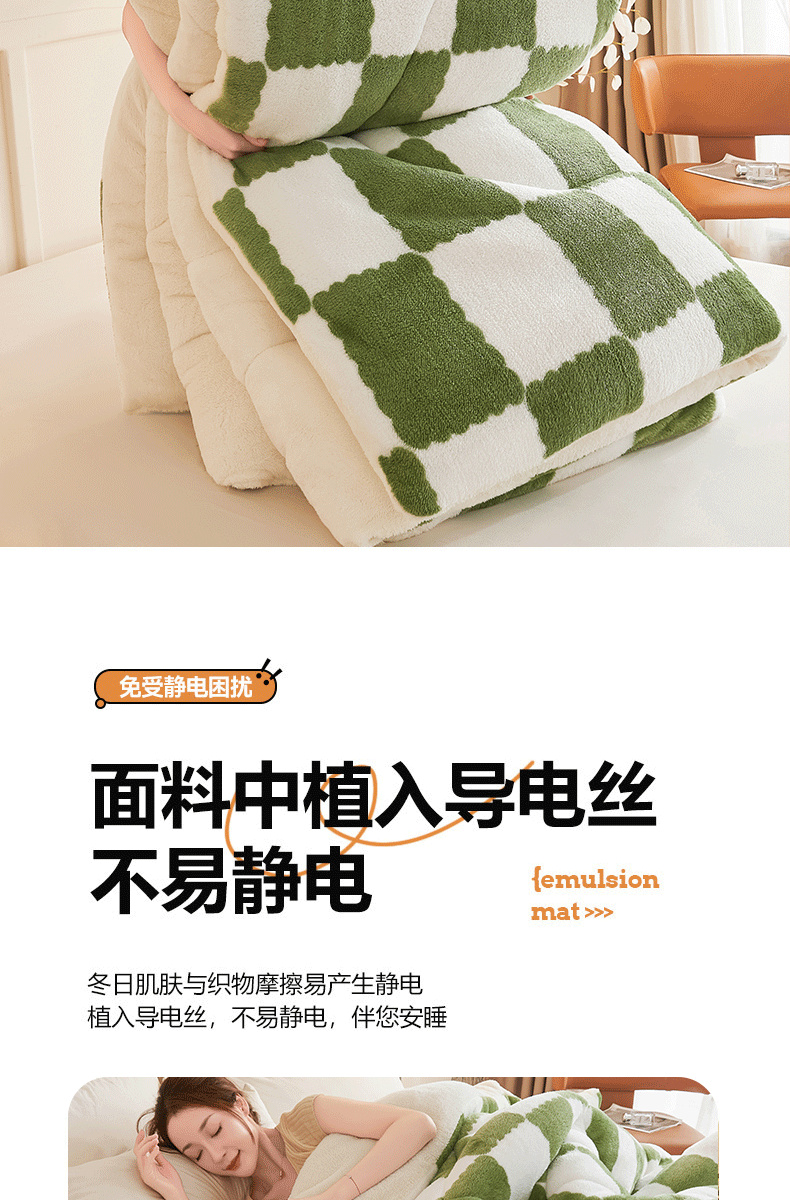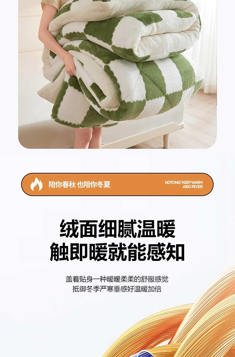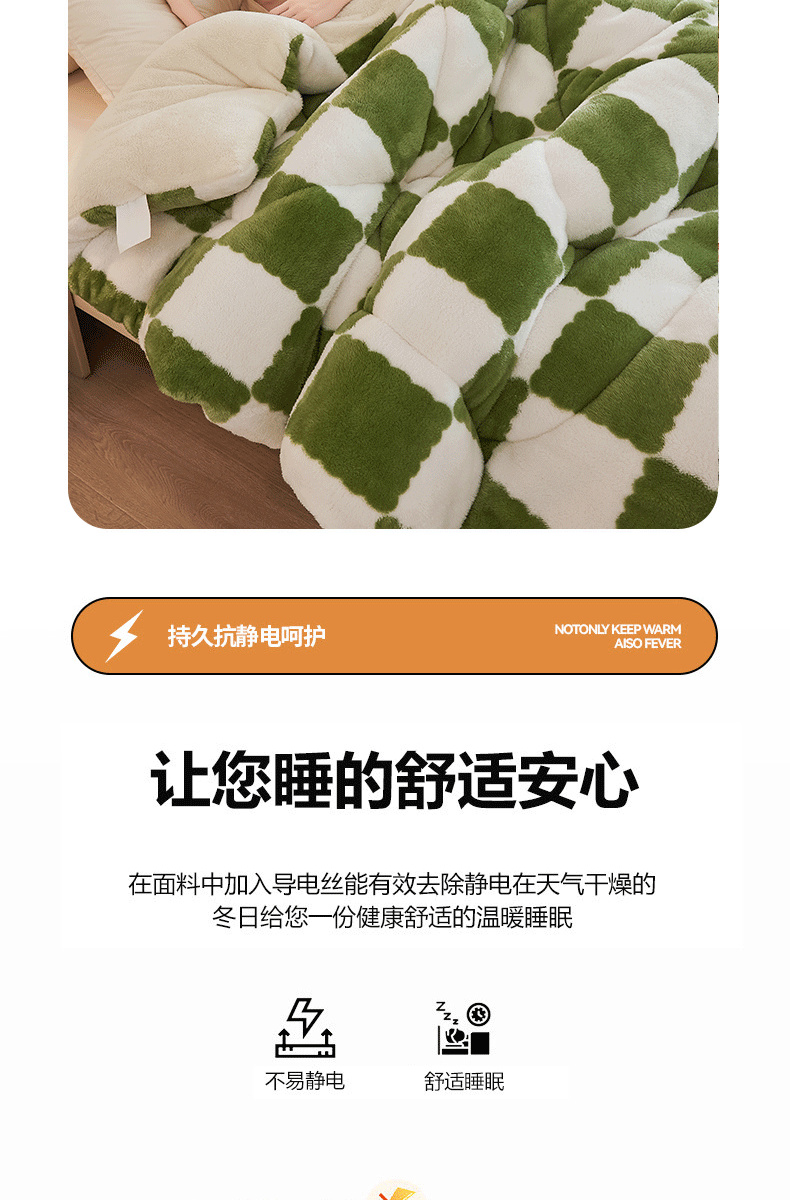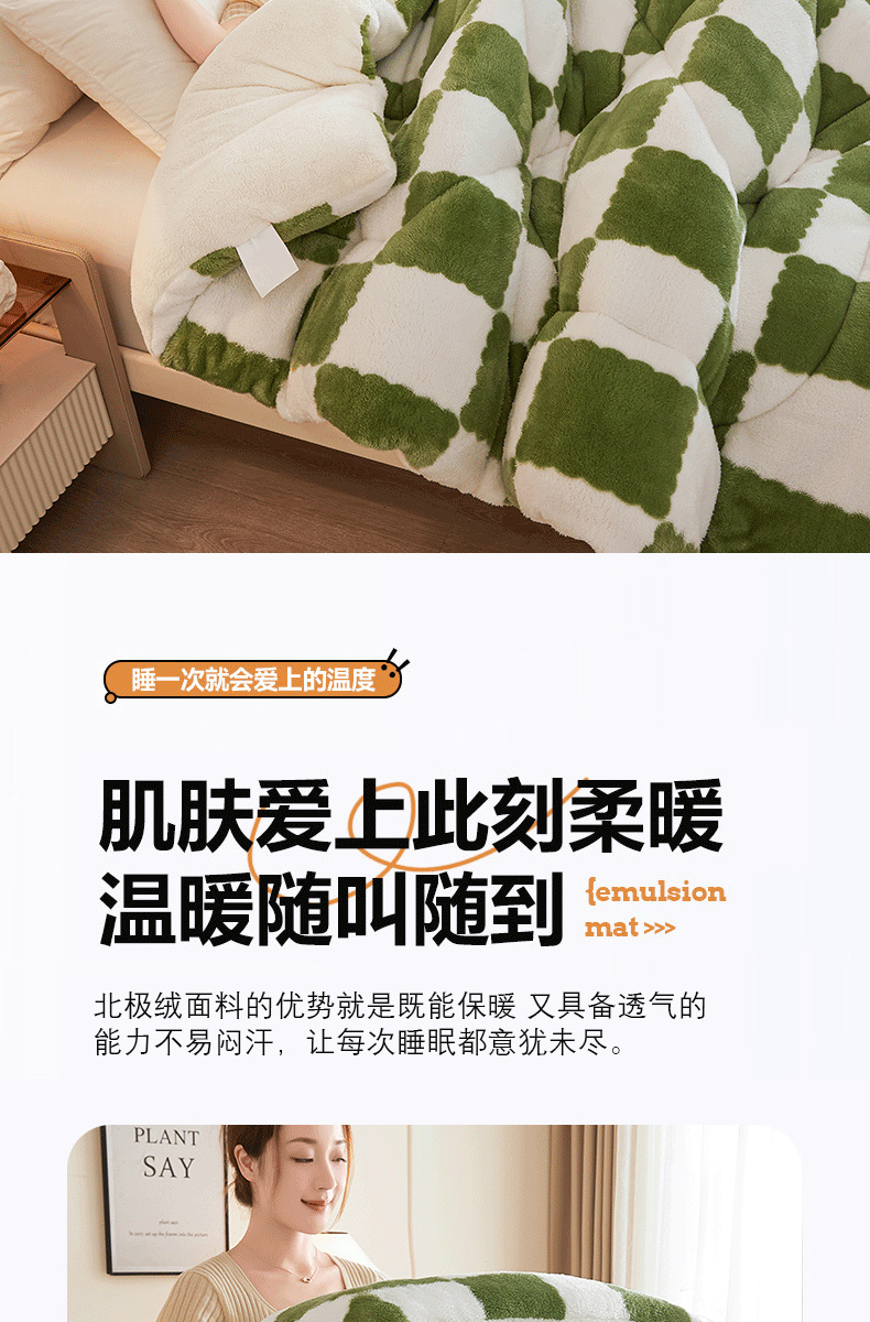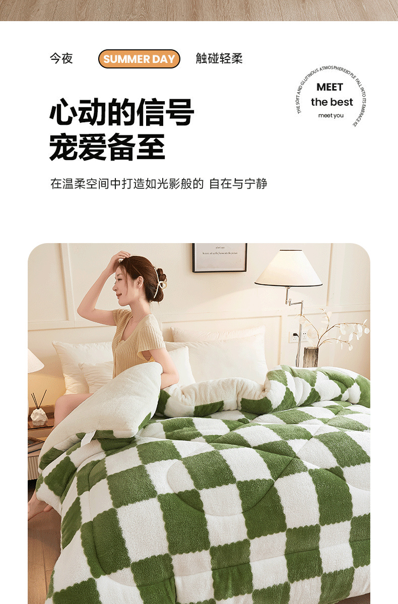 商品名称:爱屋及屋 2025新款北极绒双面绒牛奶绒棋盘格冬被被子被芯 棋盘-绿白格