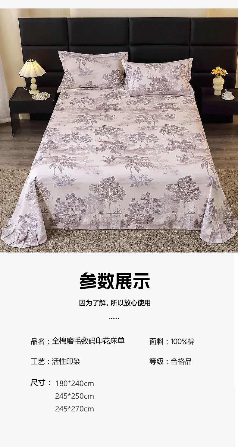 商品名称:馨雅家纺 2025新款全棉磨毛数码印花单品床单 格林-棕
