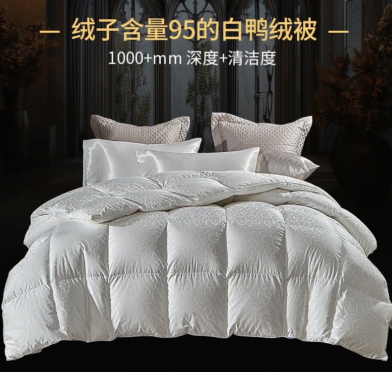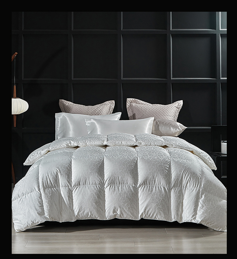 当前位置: 91家纺网 > 商品网购 > 被子 > 羽绒被 > 暖羽屋羽绒馆 2025新款95鸭绒95绒子含量超精密金银丝大提花冬被羽绒被子双人羽绒春秋被芯 洛威尔 白