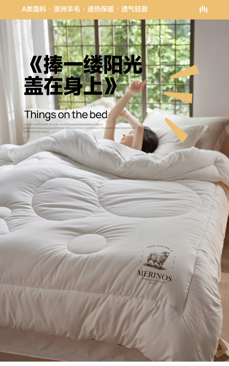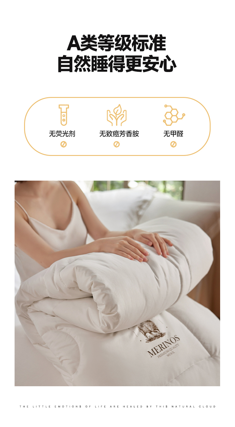 商品名称:莱福仕家纺 2025新款防跑毛优选澳洲羊毛被被子被芯 金标甄选澳洲羊毛被