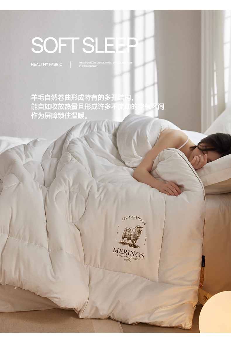 (总)莱福仕家纺 2025新款防跑毛优选澳洲羊毛被被子被芯,防跑毛羊毛被,金标甄选澳洲羊毛被