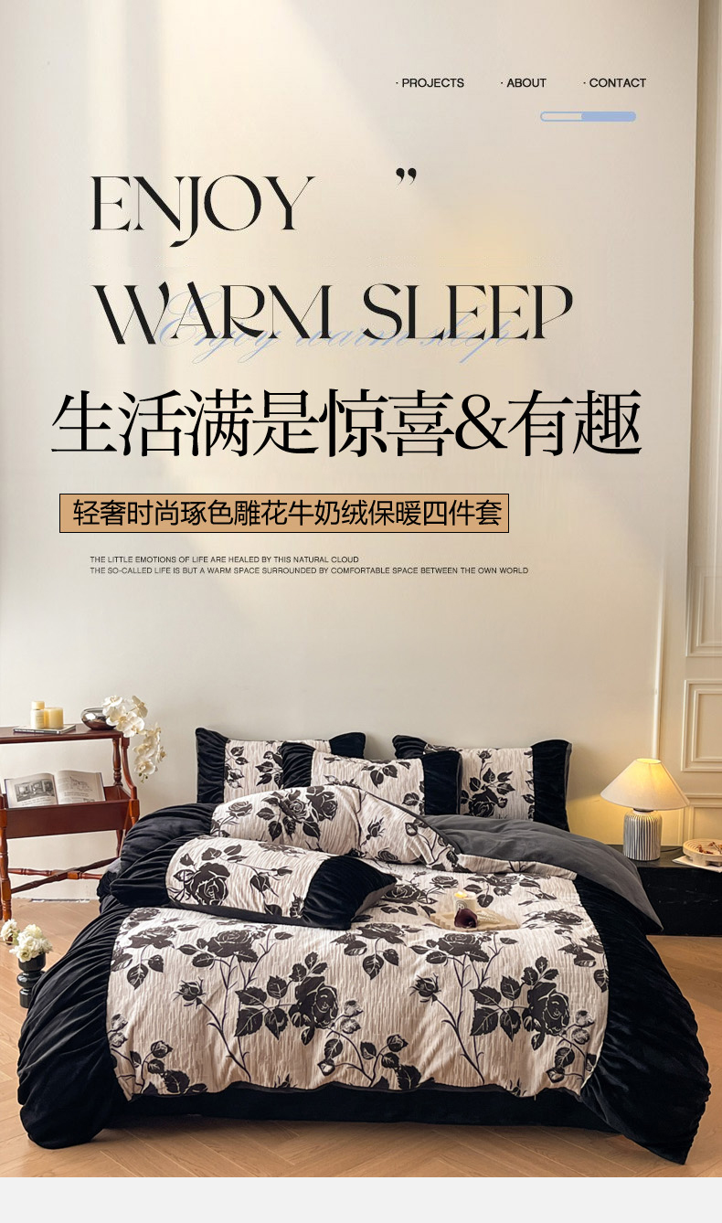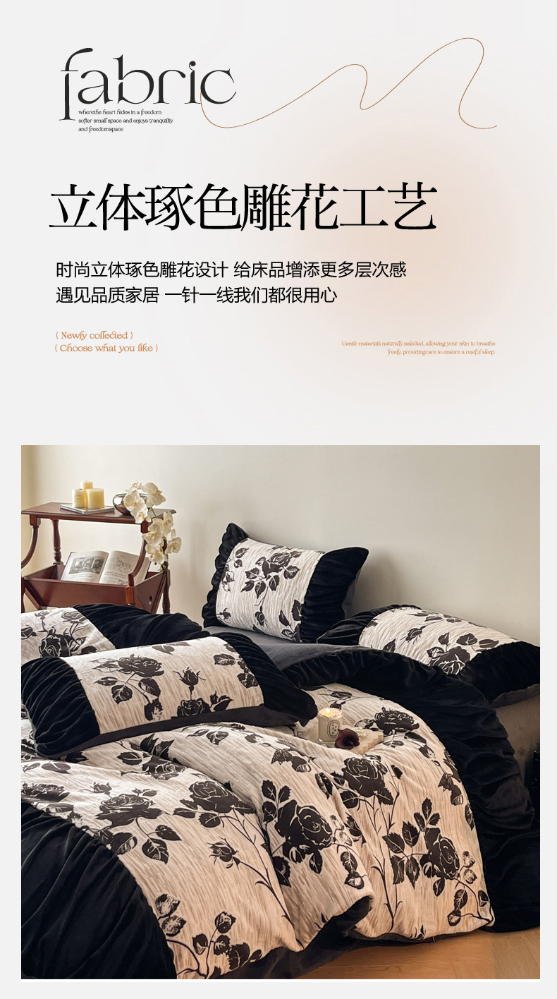 当前位置: 91家纺网 > 商品网购 > 床品套件 > 四件套 > 牛奶绒四件套 > 慕澄家纺 2025新款高克重泡泡袖琢色雕花牛奶绒四件套 秘境