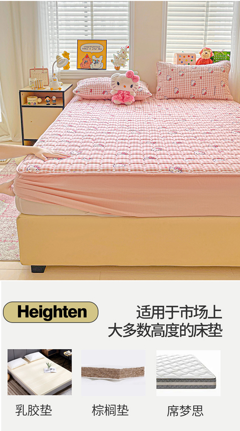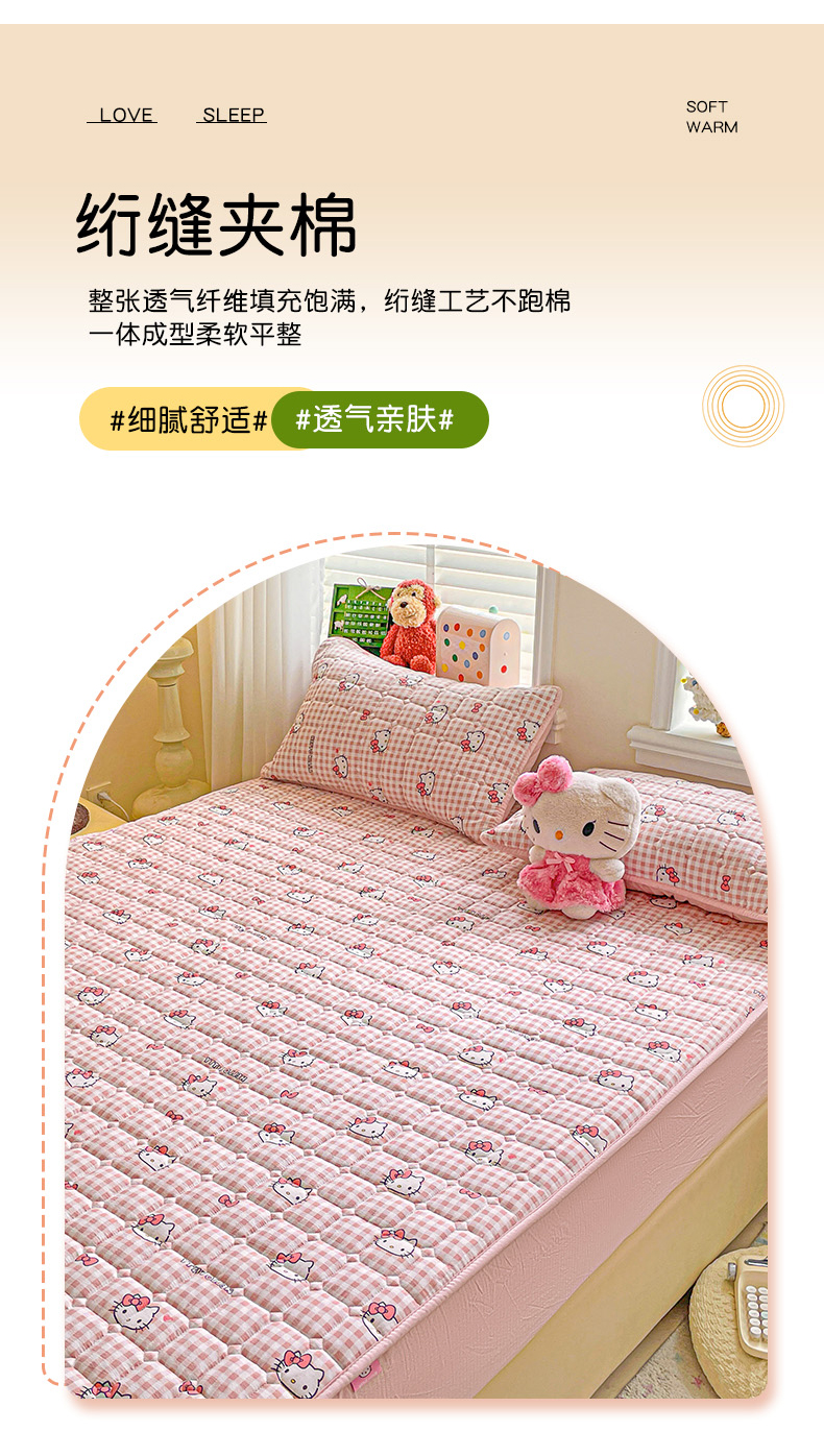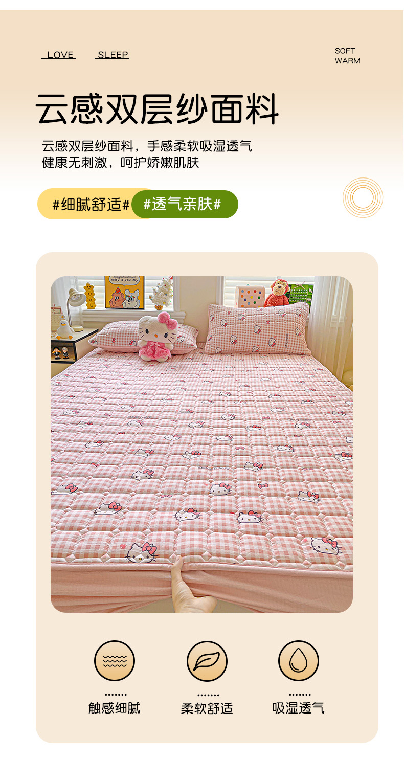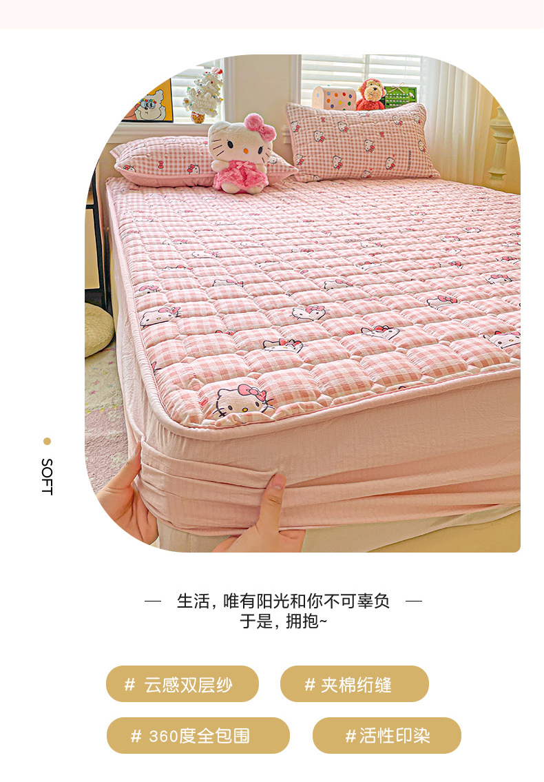 商品名称:星禾优选 2025新款三丽鸥云感双层纱夹棉床笠系列-大床款 床笠款-胡须粉kt