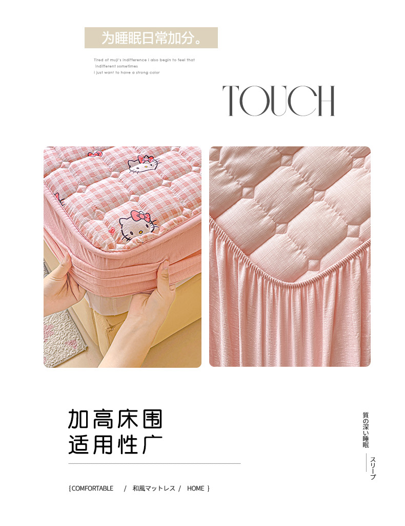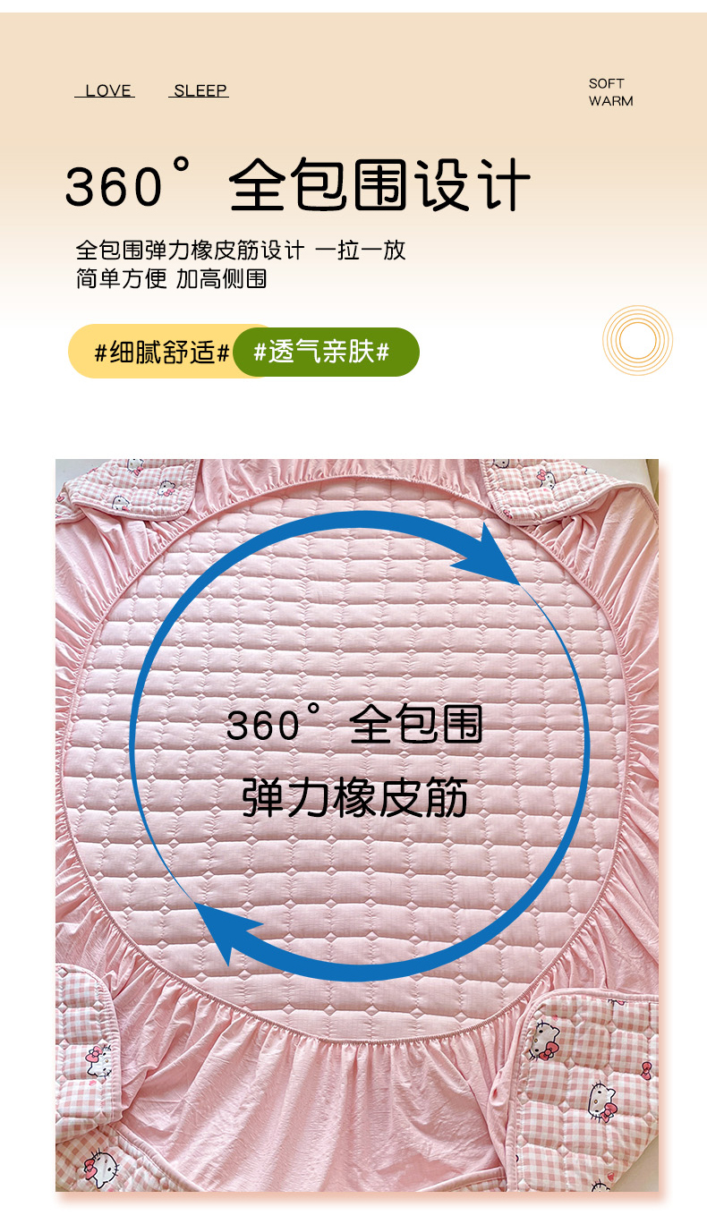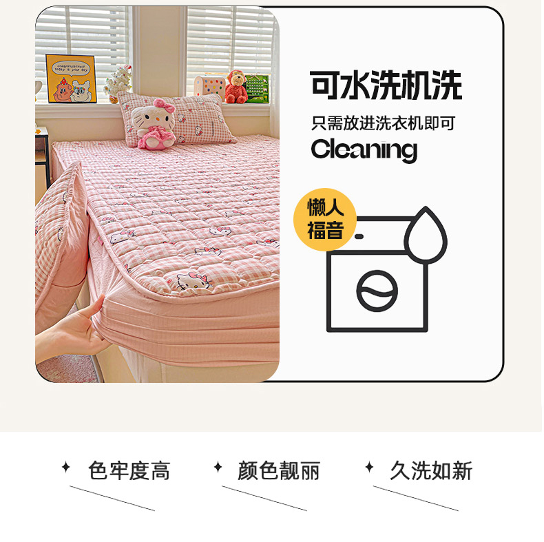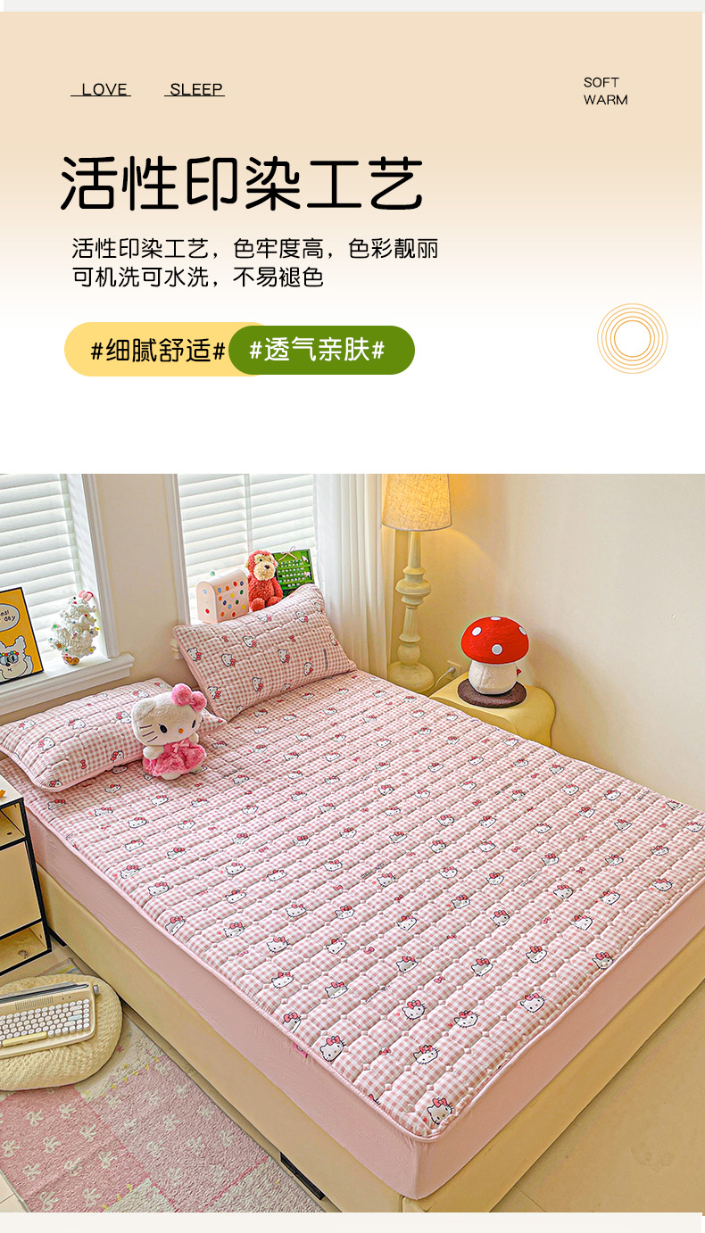 商品名称:星禾优选 2025新款三丽鸥云感双层纱夹棉床笠系列-大床款 床笠款-胡须粉kt