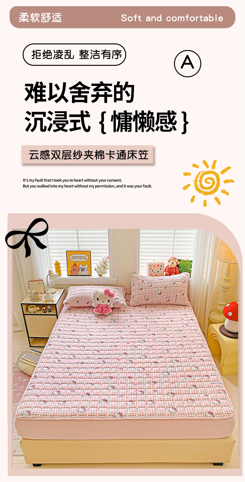 星禾优选 2025新款三丽鸥云感双层纱夹棉床笠系列-大床款 床笠款-胡须粉kt