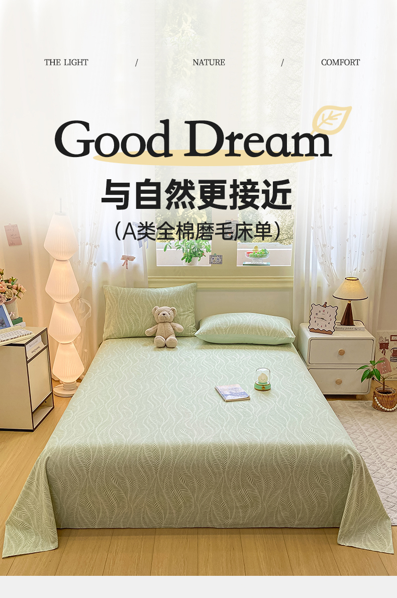 当前位置: 91家纺网 > 商品网购 > 床上用品 > 床单 > 灰鲸 2025新款全棉纯棉磨毛单床单 千逐-绿