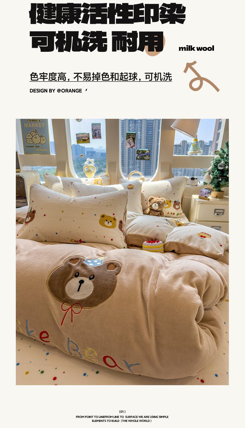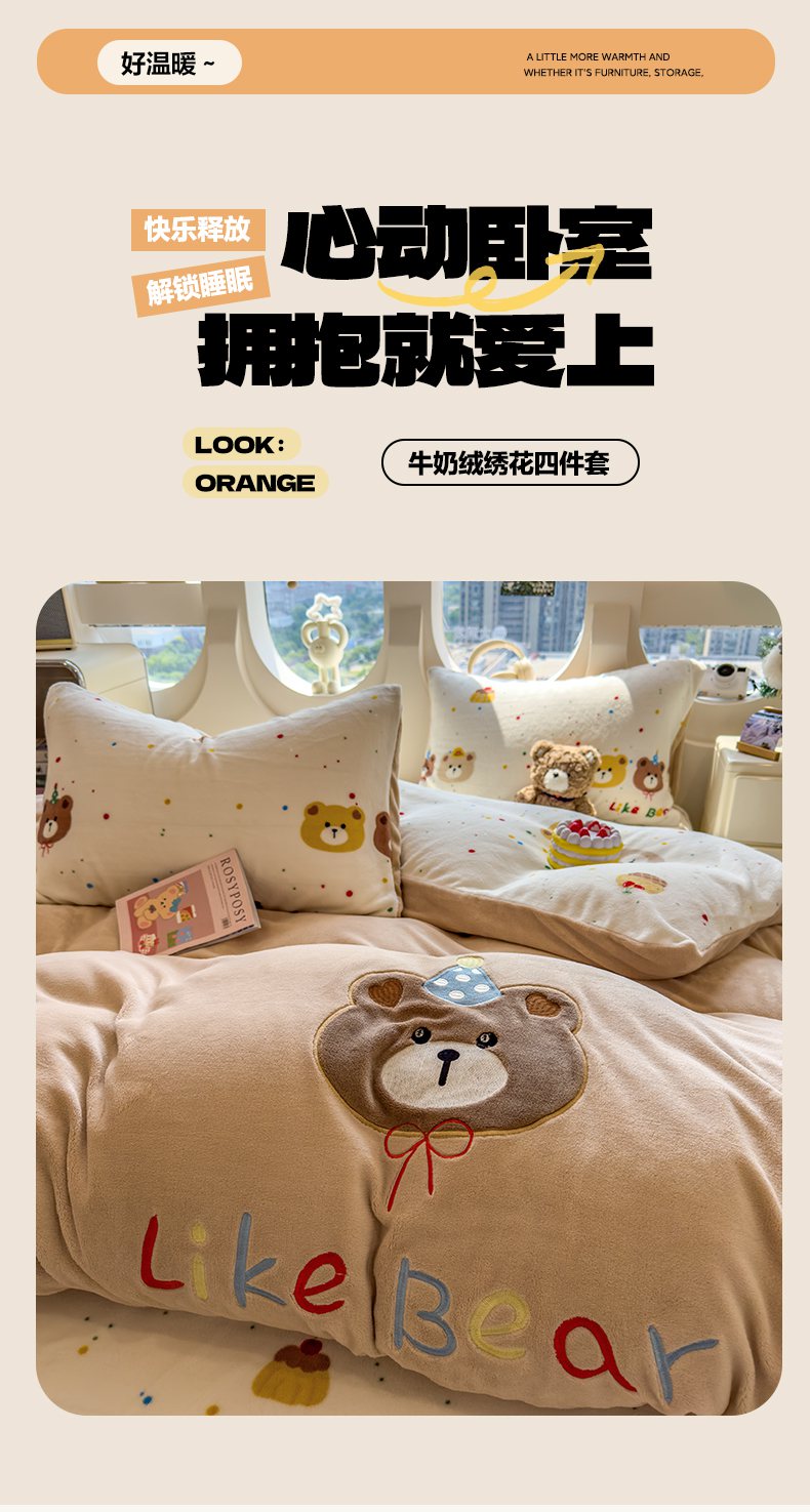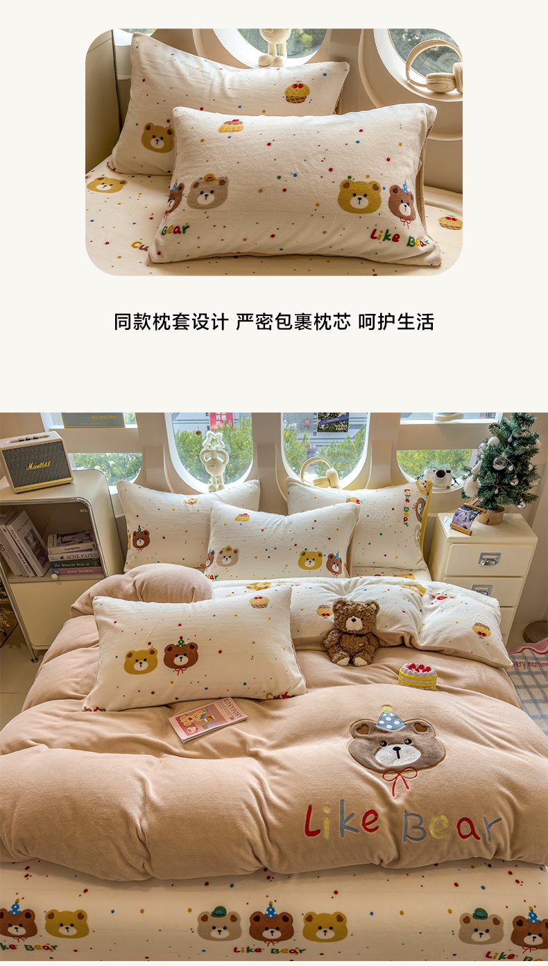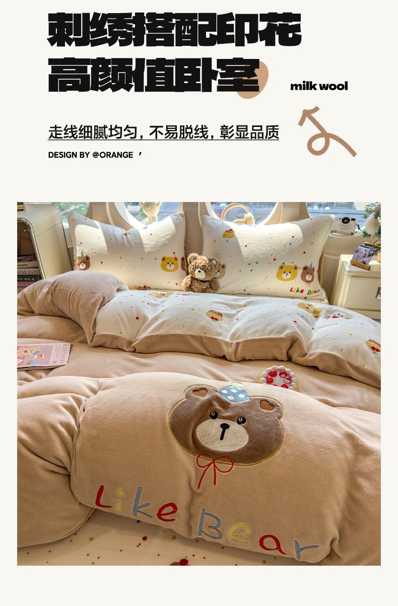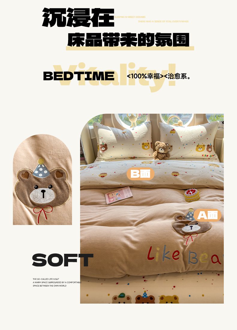 商品名称:摩妮卡 2025新款卡通牛奶绒刺绣四件套系列 小熊派对日