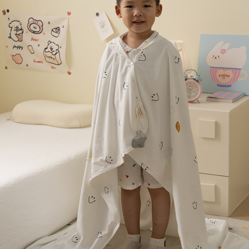 商品名称:寐居家纺 2025新款企鹅绒多功能儿童毛巾毯(可当披肩用) 企鹅绒毯-繁花