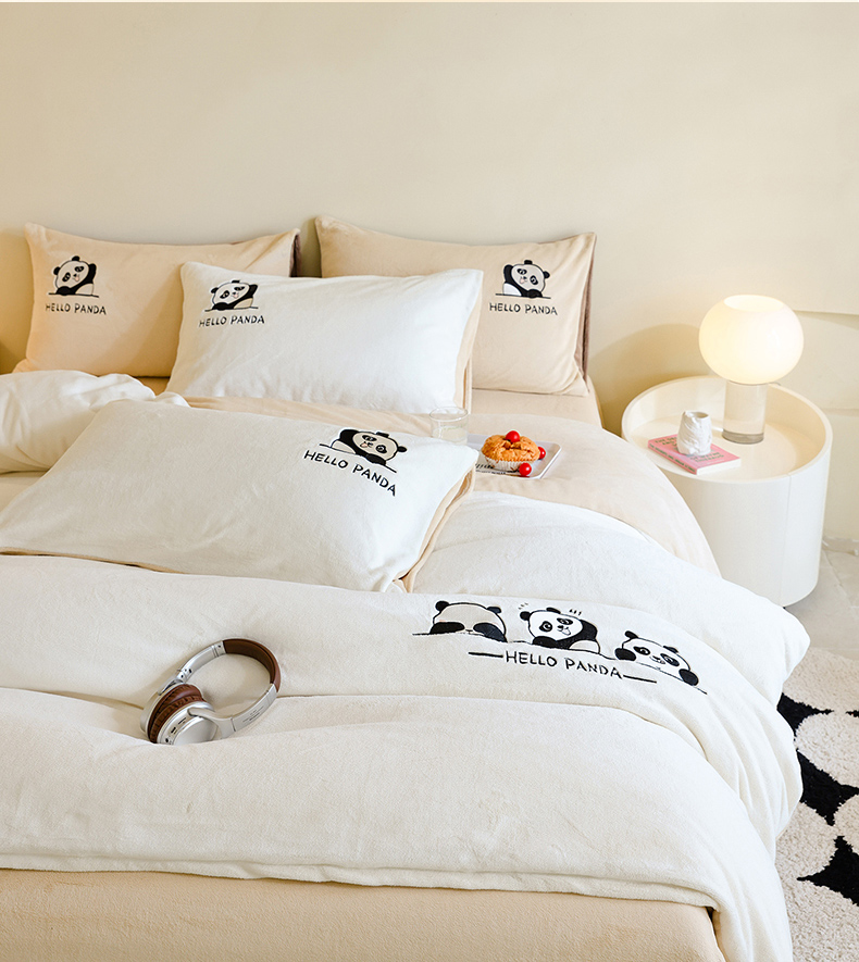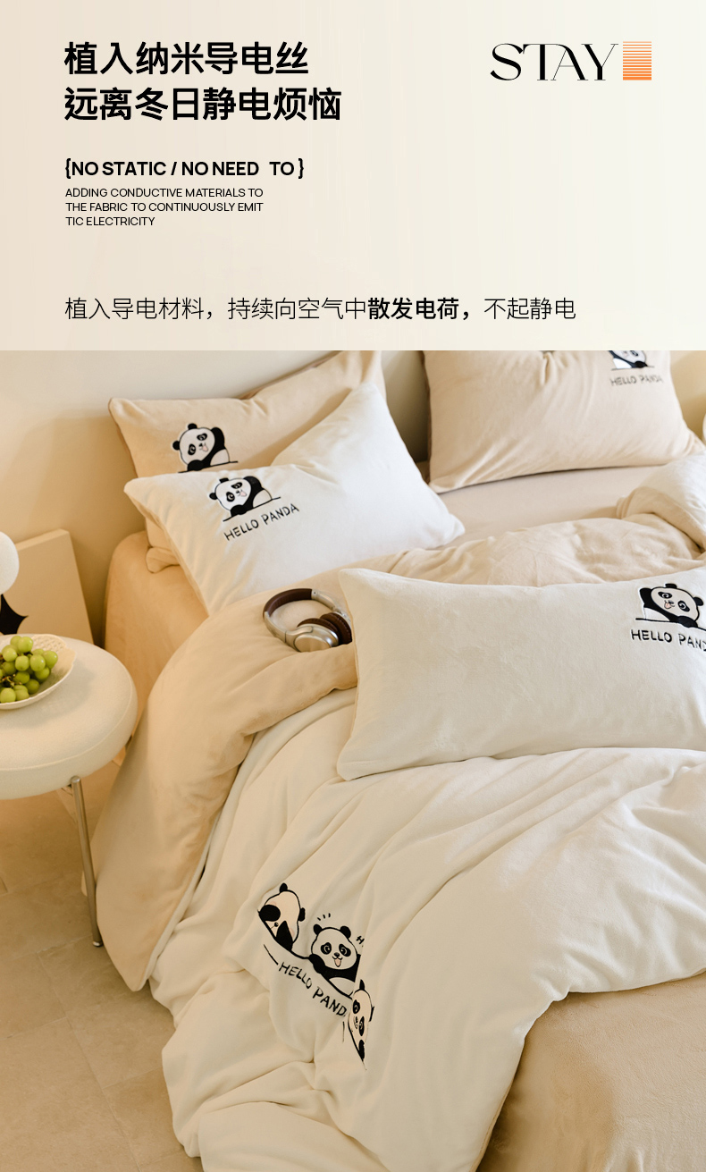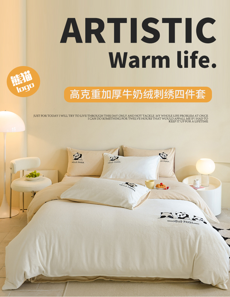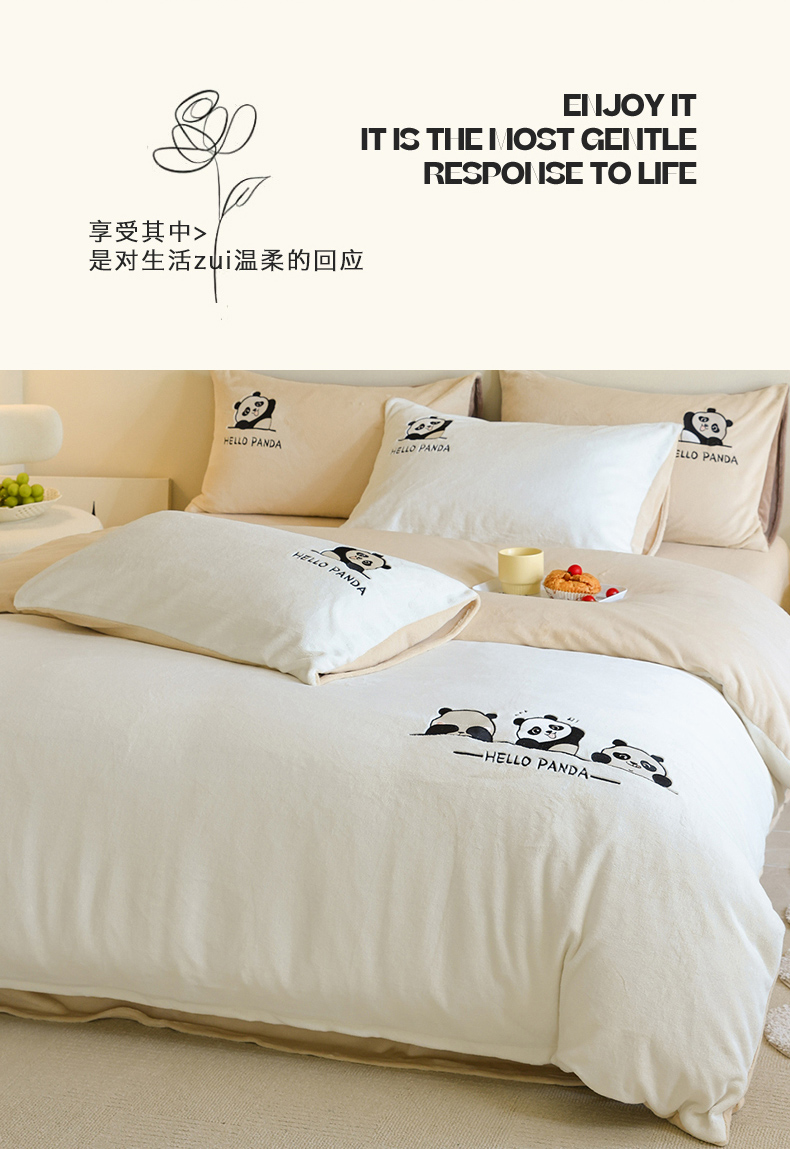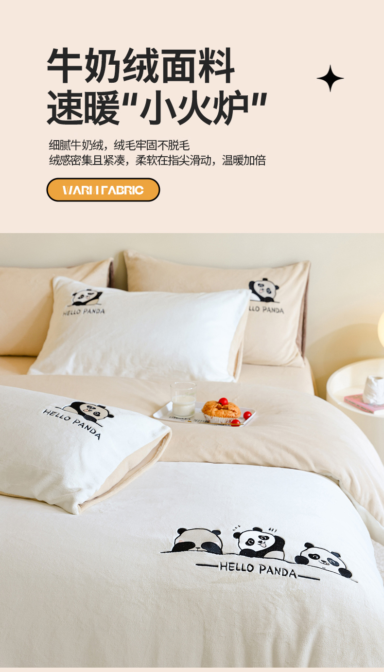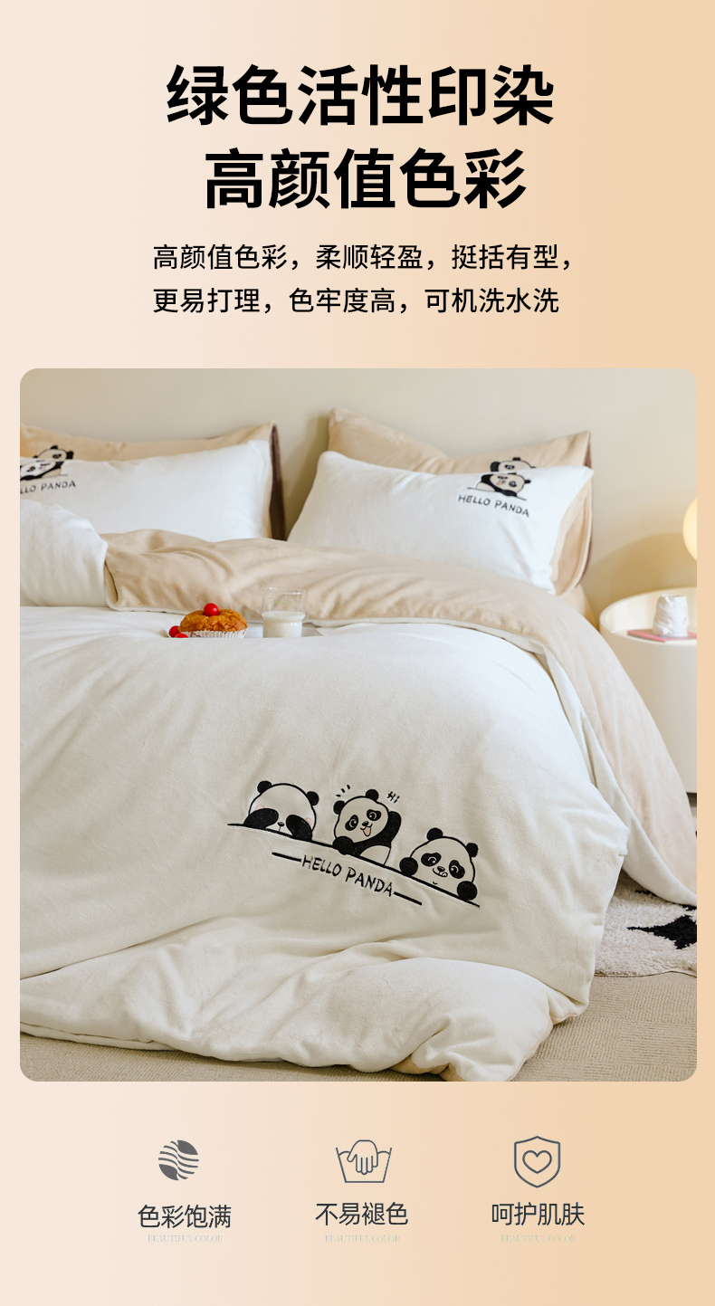 当前位置: 91家纺网 > 商品网购 > 床品套件 > 四件套 > 牛奶绒四件套 > ONE TWO ONE 121 新品【牛奶绒刺绣四件套】2025毛毯被子四件套单件床单被套床笠珊瑚绒牛奶绒冬被法兰绒兔毛绒panda panda-白咖