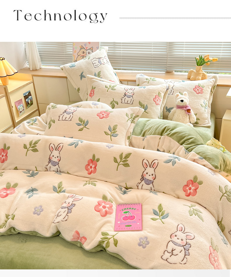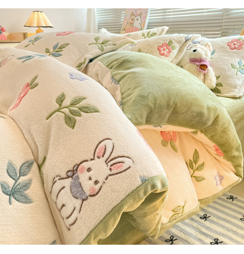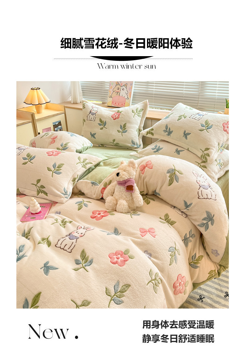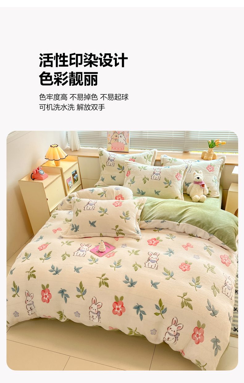 商品名称:慕尚家纺 2025新款高克重印花雪花绒被套单件 好运兔