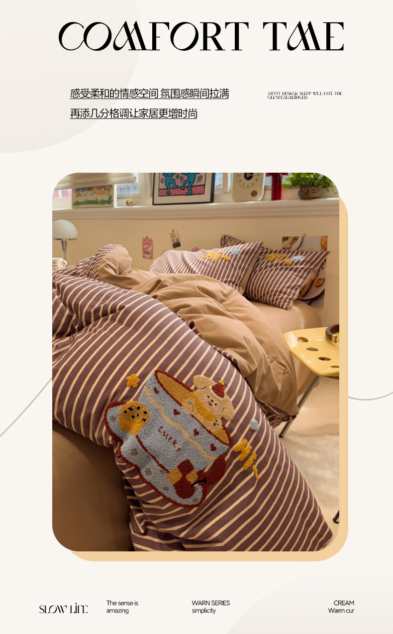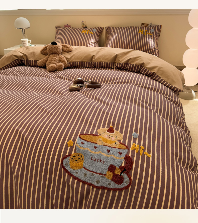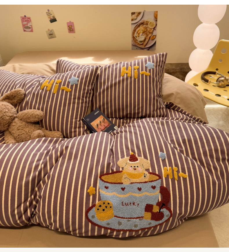 当前位置: 91家纺网 > 商品网购 > 床品套件 > 四件套 > 普通磨毛四件套 > 慕尚家纺 2025新款全棉磨毛毛巾绣四件套 布丁狗