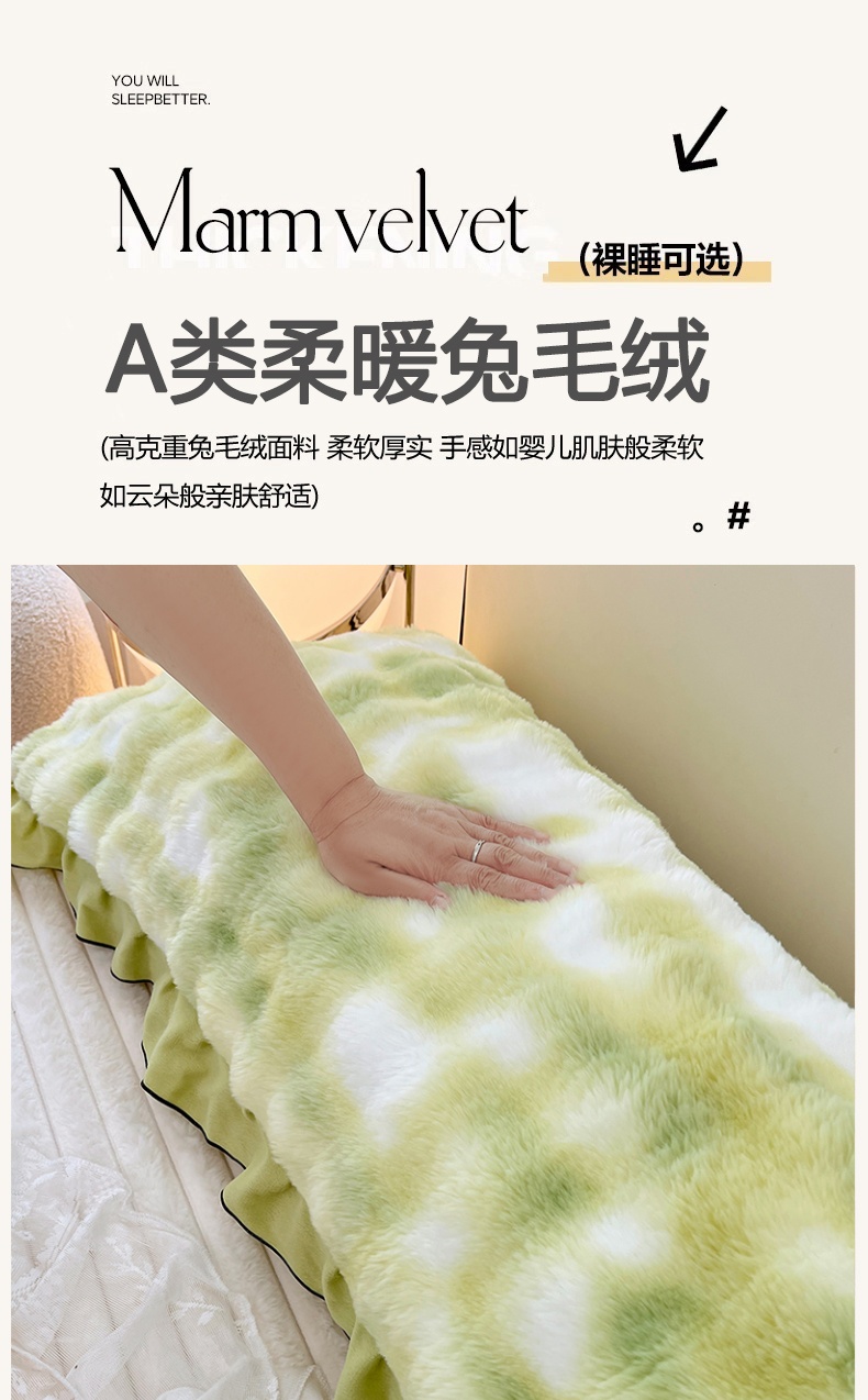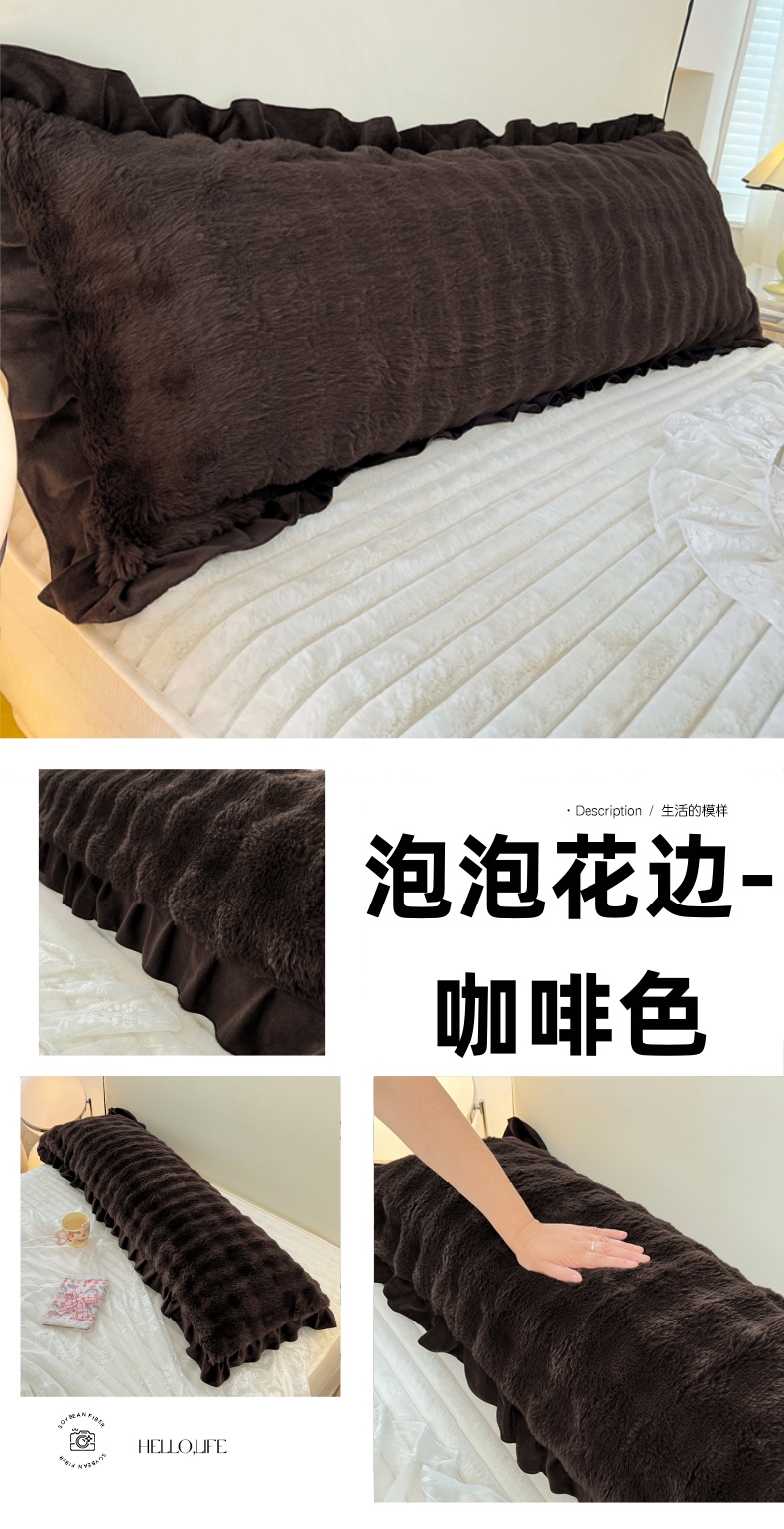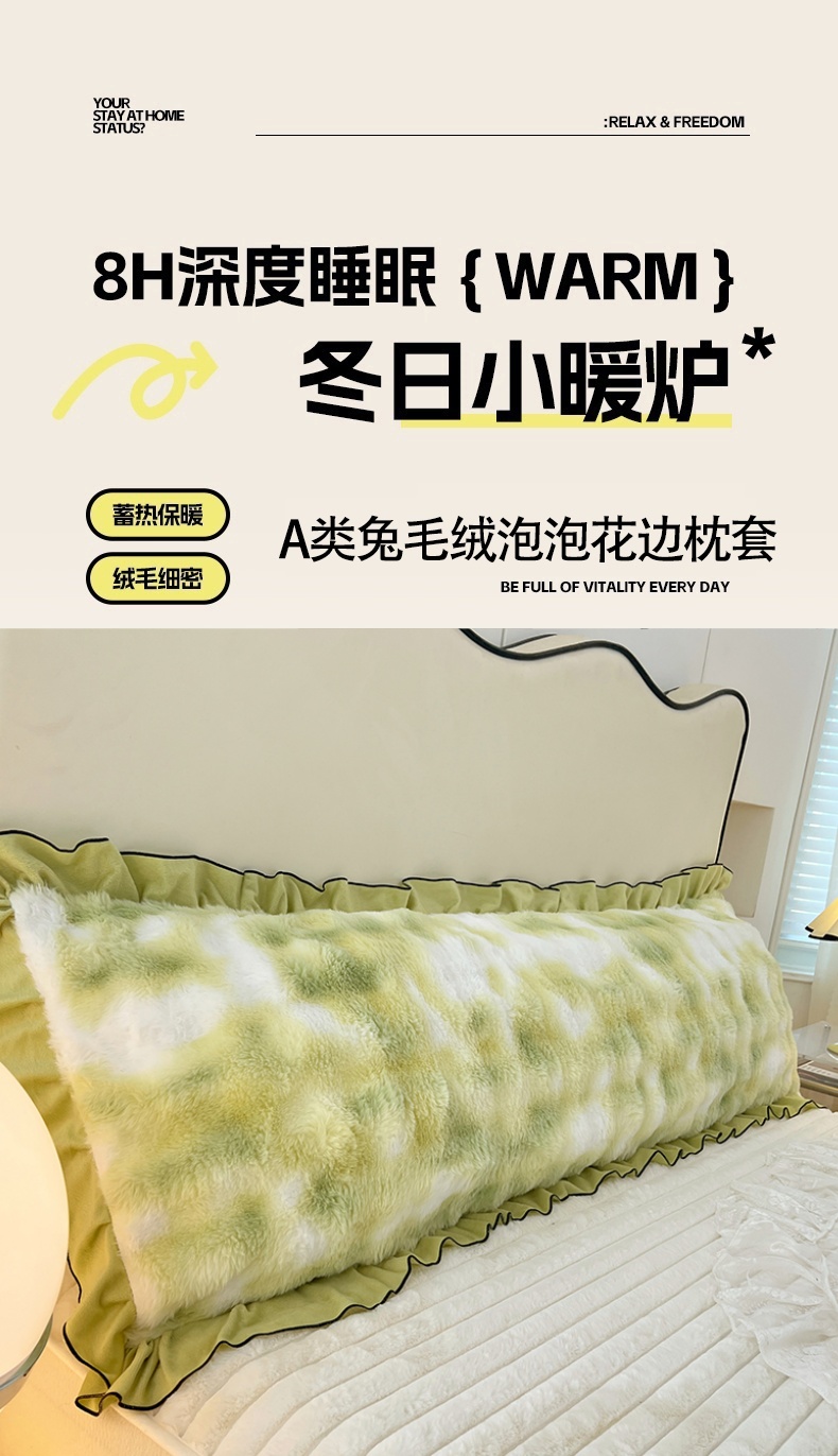 • 91家纺网 家纺一手货源 找家纺 梦舒羽 2025新款兔毛绒花边双人枕套牛奶绒加长情侣枕芯套雪花绒枕头套-泡泡 兔毛绒泡泡花边款-梦幻果绿