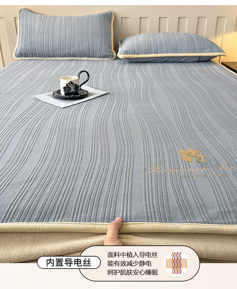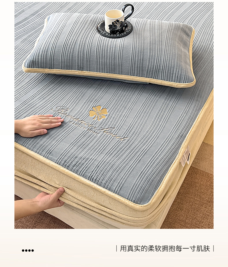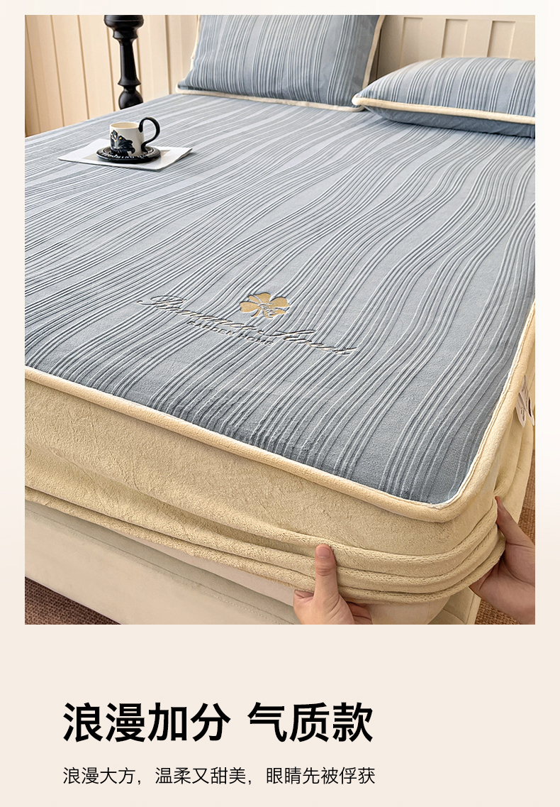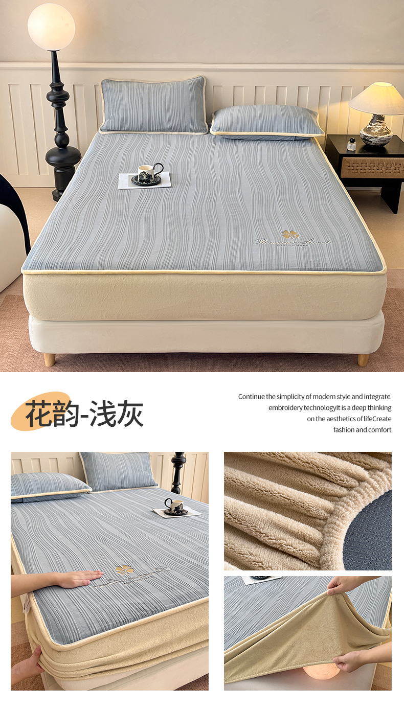 笙意家纺 2025新款A类加厚牛奶绒烂花复合床笠 花韵-浅灰
