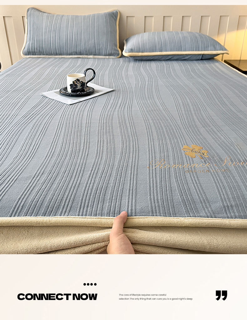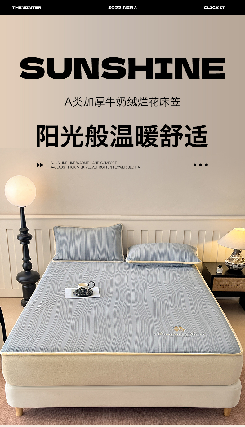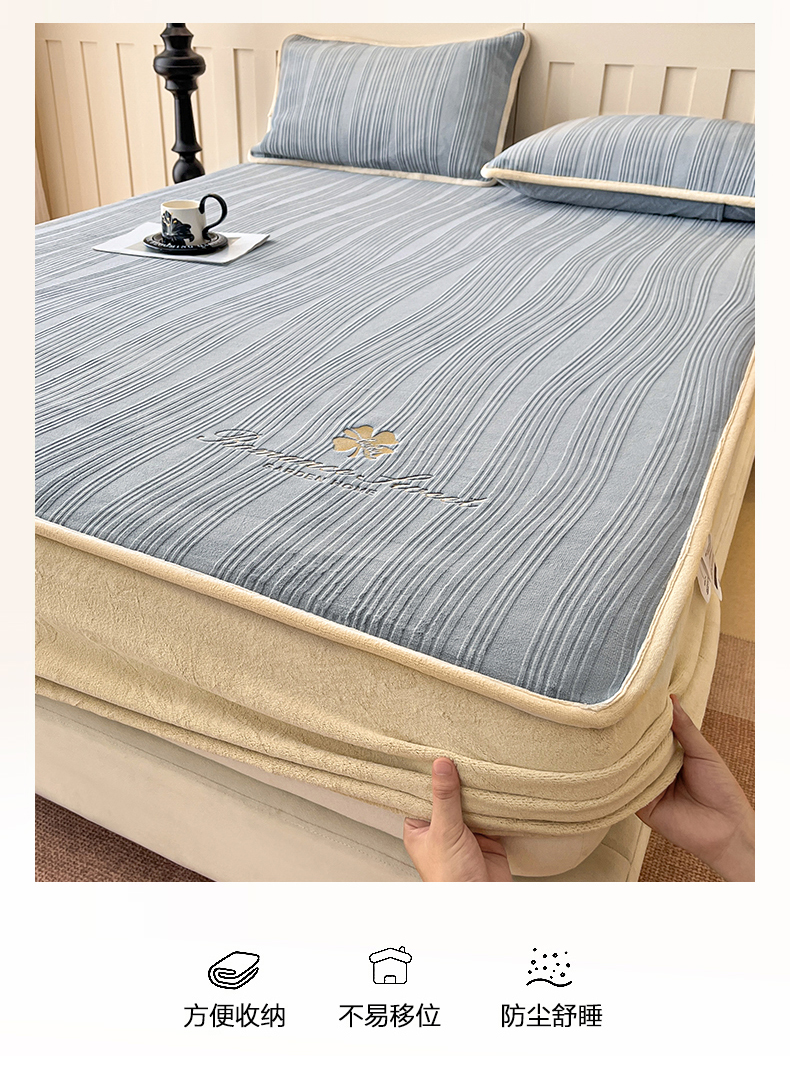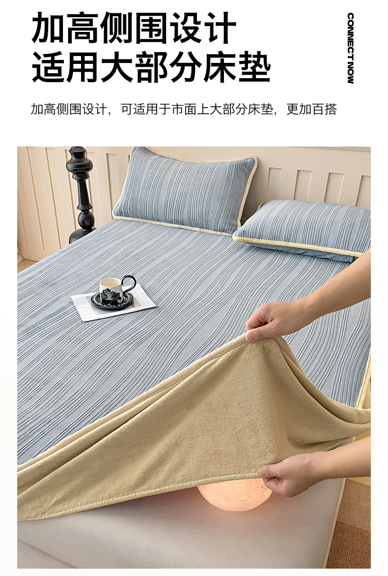 笙意家纺 2025新款A类加厚牛奶绒烂花复合床笠 花韵-浅灰