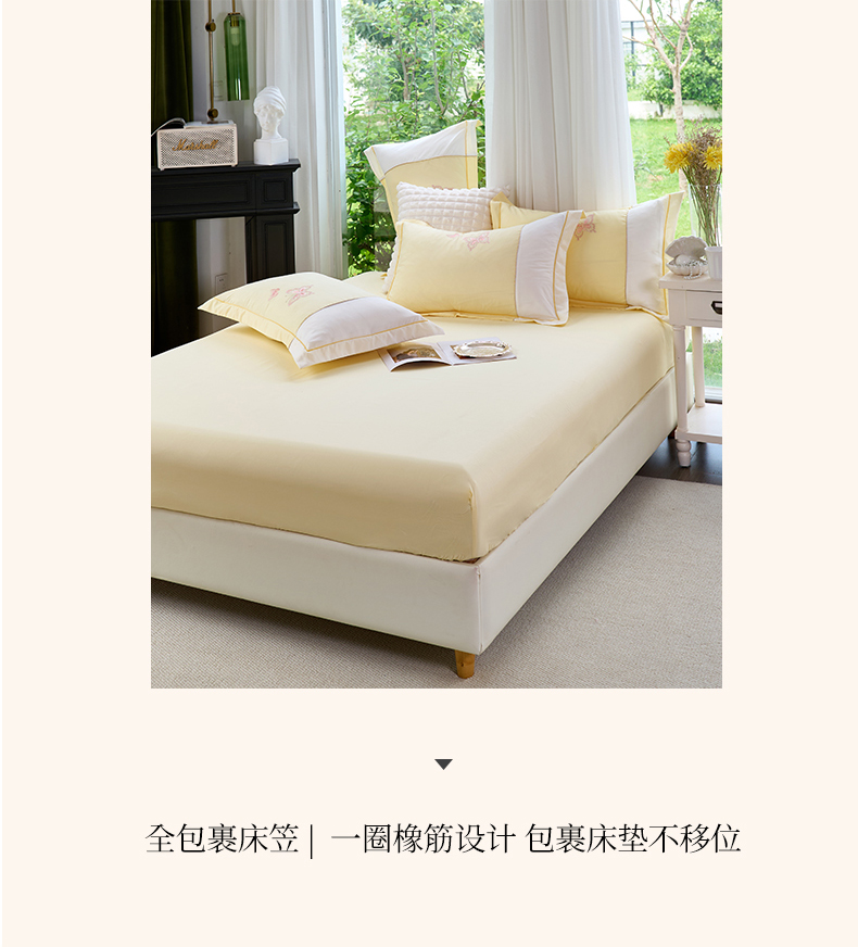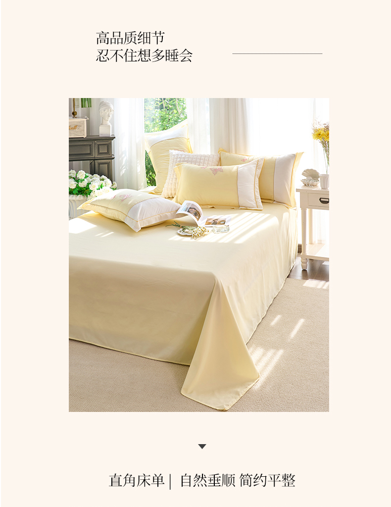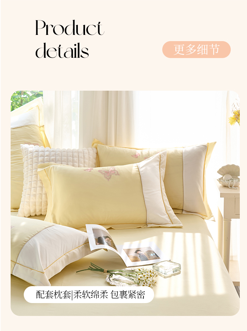 商品名称:包小包 2025新款臻丝棉拼角刺绣工艺四件套-羽栖 羽栖-奶黄