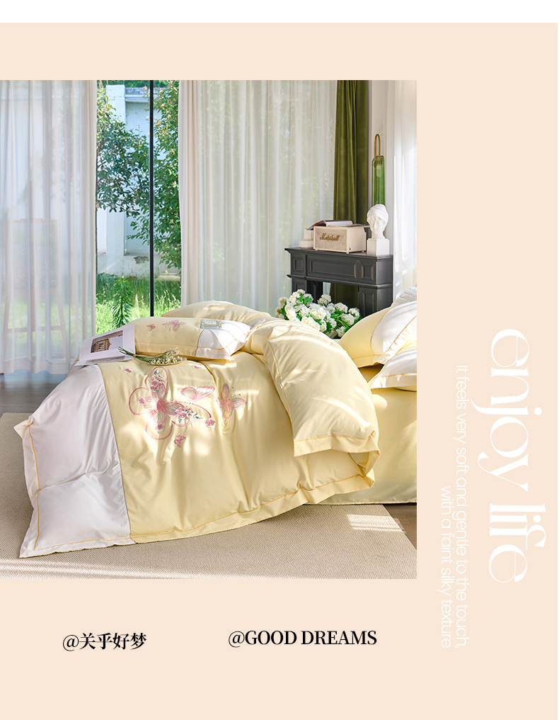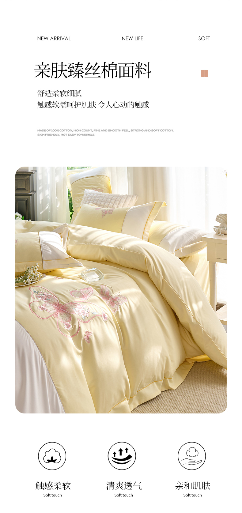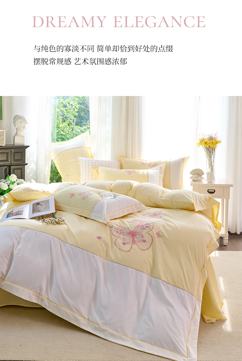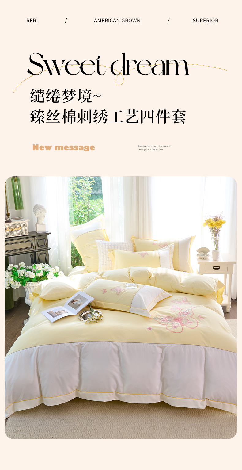包小包 2025新款臻丝棉拼角刺绣工艺四件套-羽栖 羽栖-奶黄