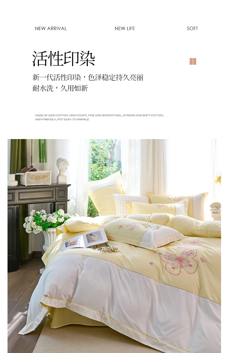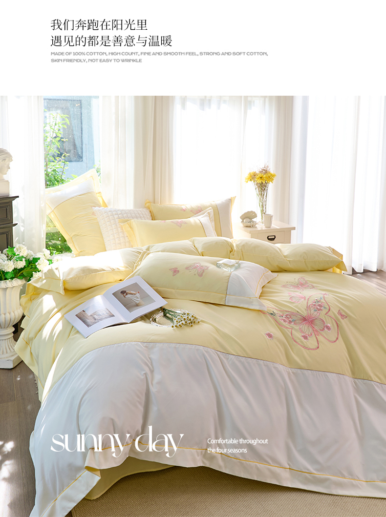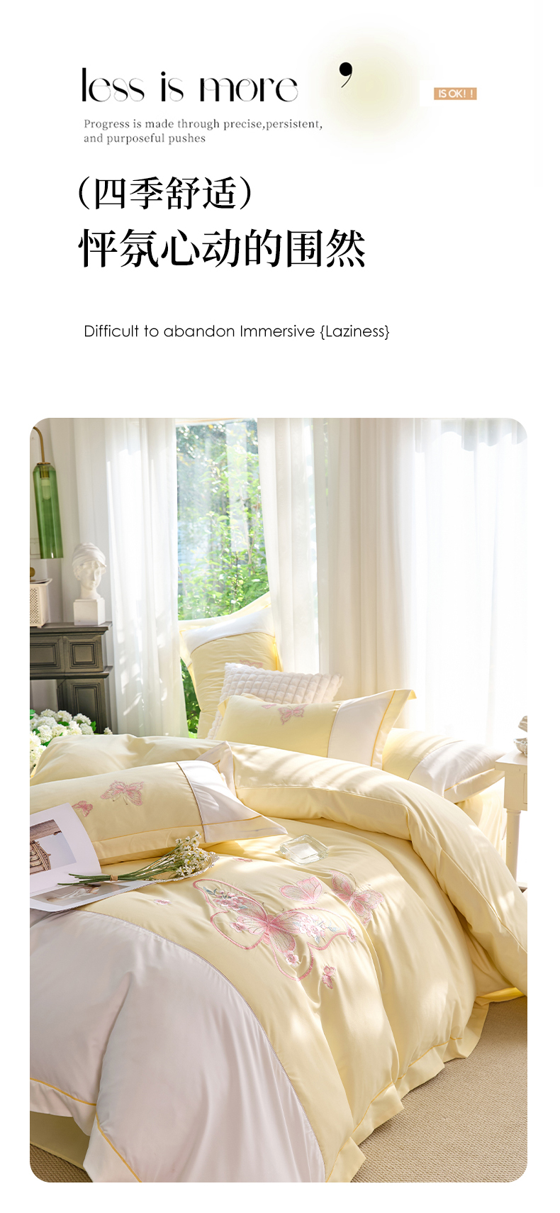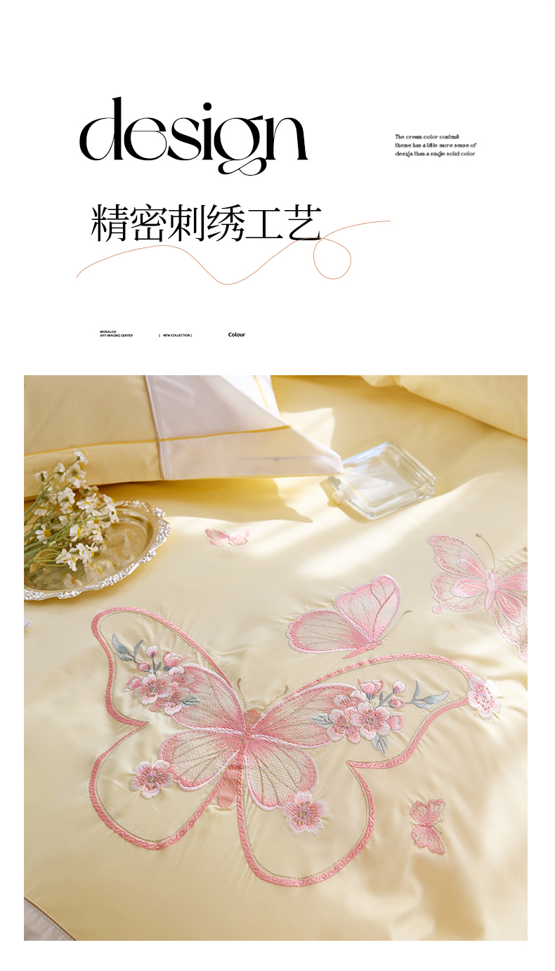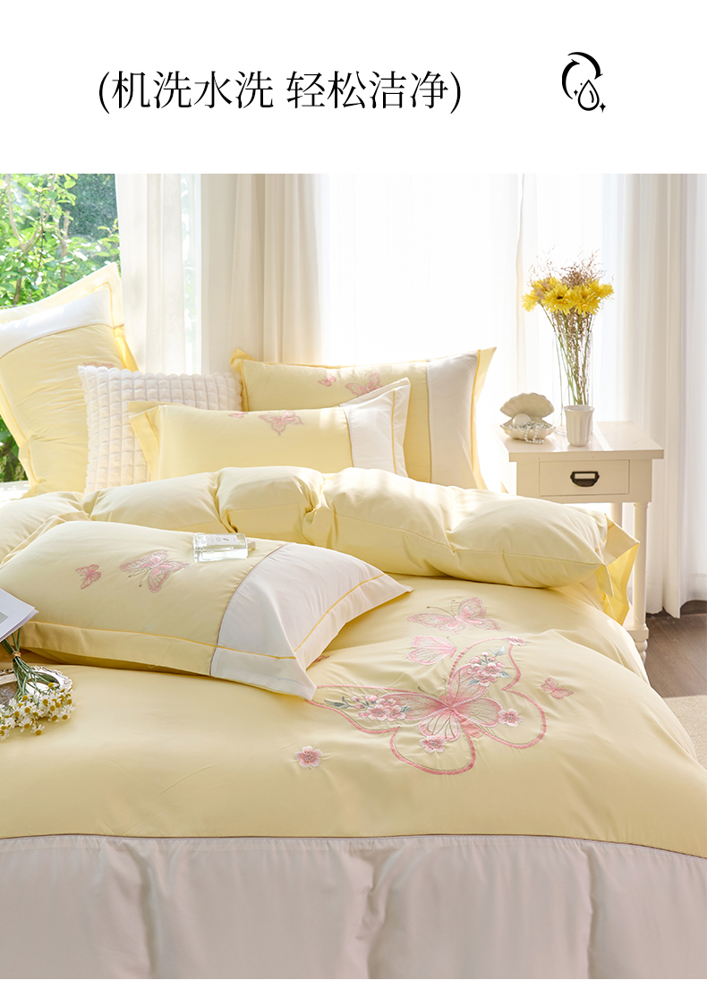 包小包 2025新款臻丝棉拼角刺绣工艺四件套-羽栖 羽栖-奶黄