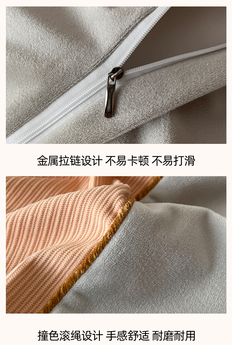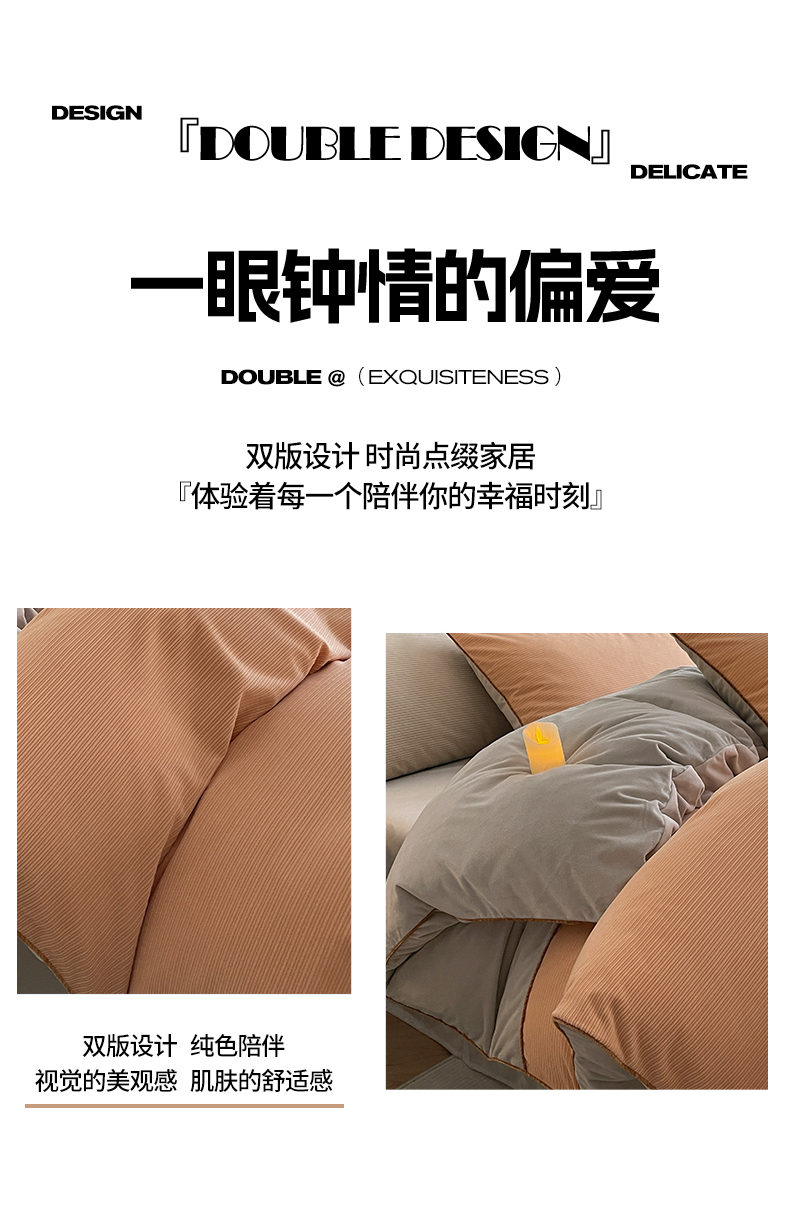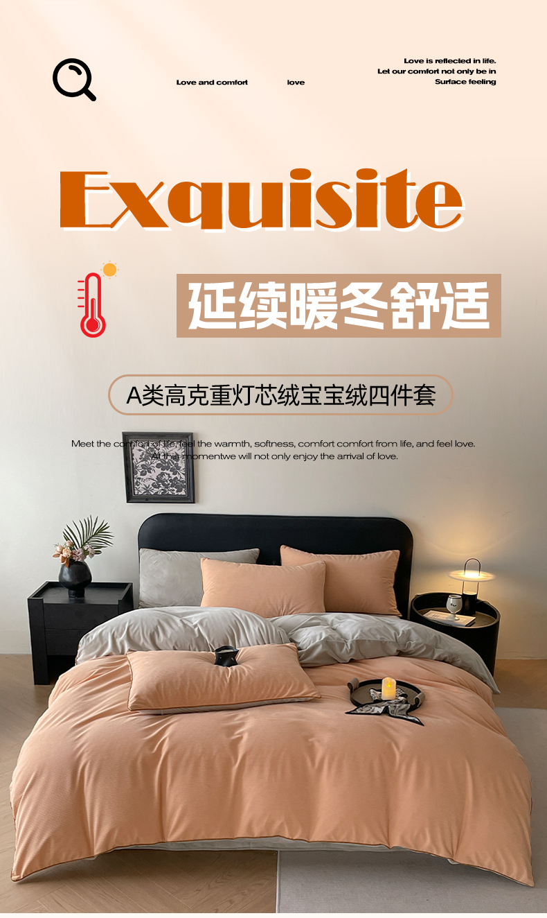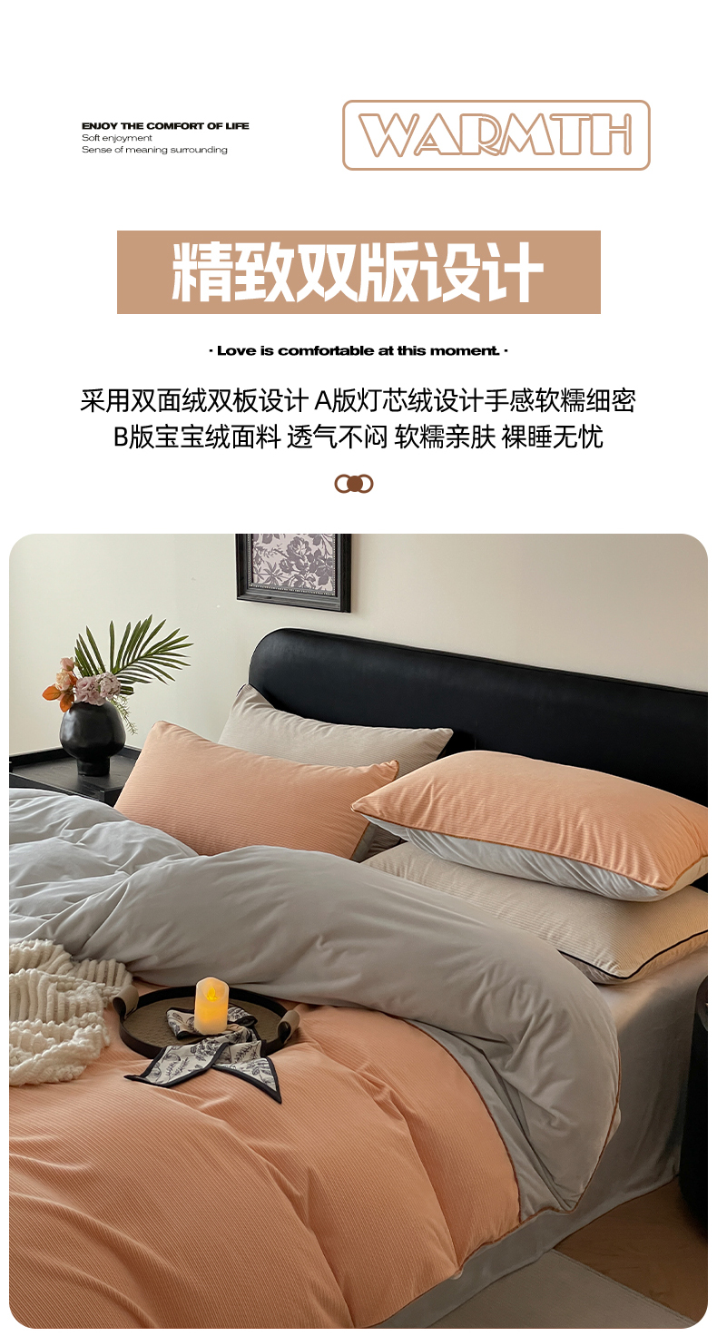 羚羊语家纺 2025新款280克灯芯绒婴儿绒四件套高级嵌绳拼接款水晶绒宝宝绒牛奶绒床单床笠款三件套-奶芙绒系列 浮光沁橙