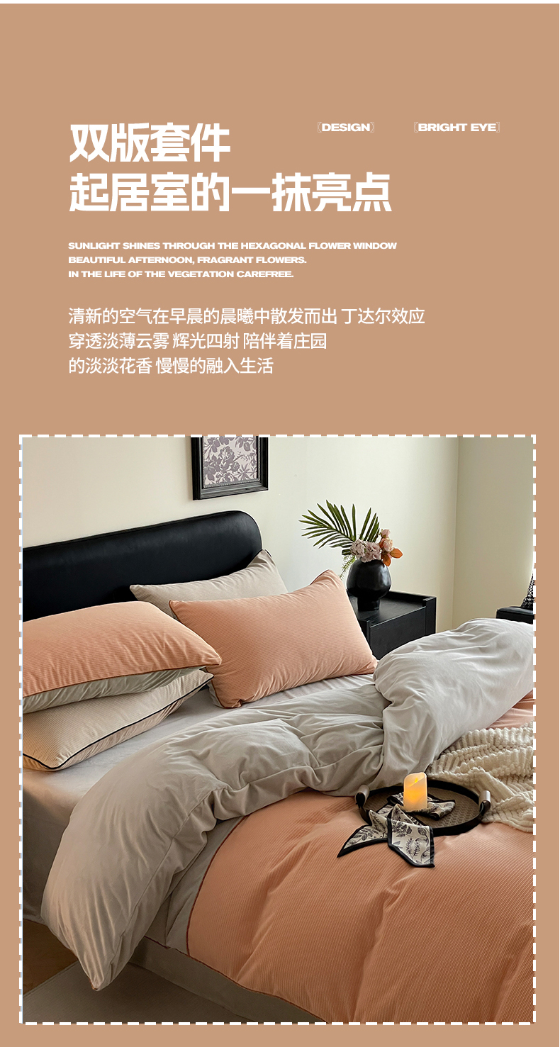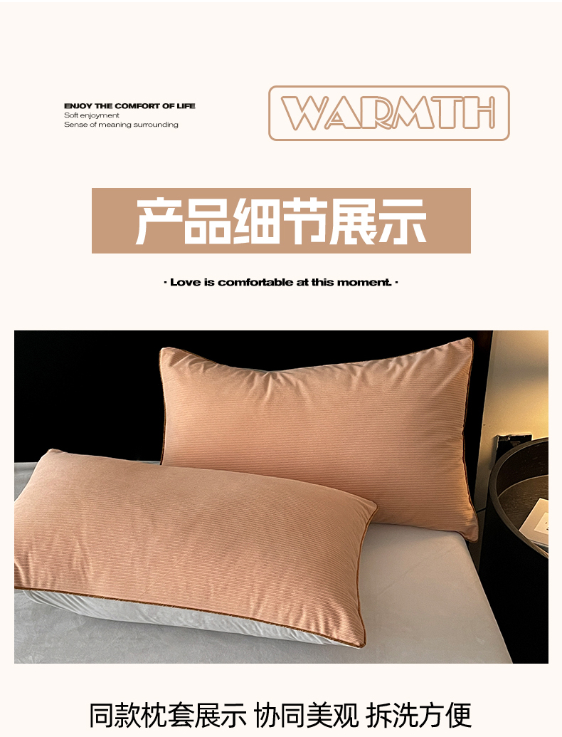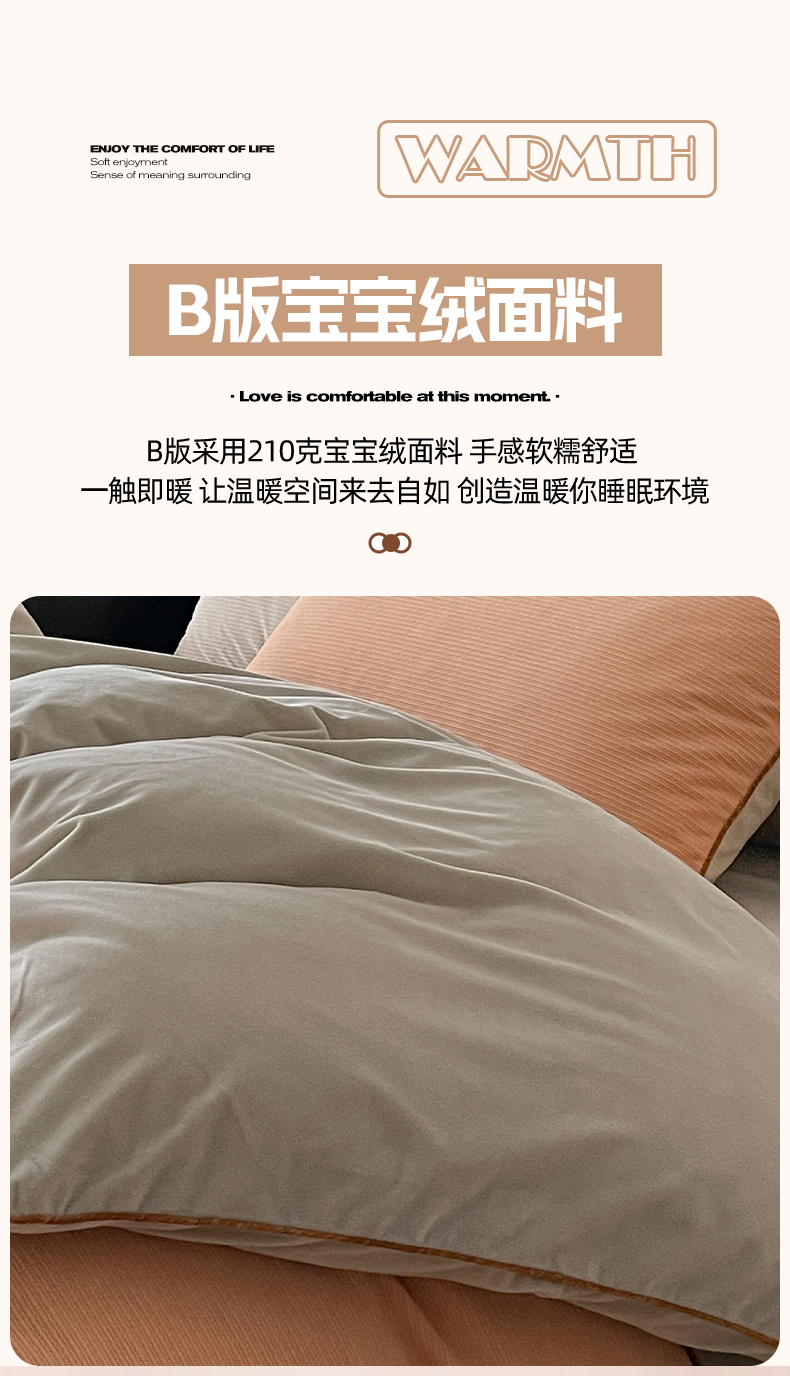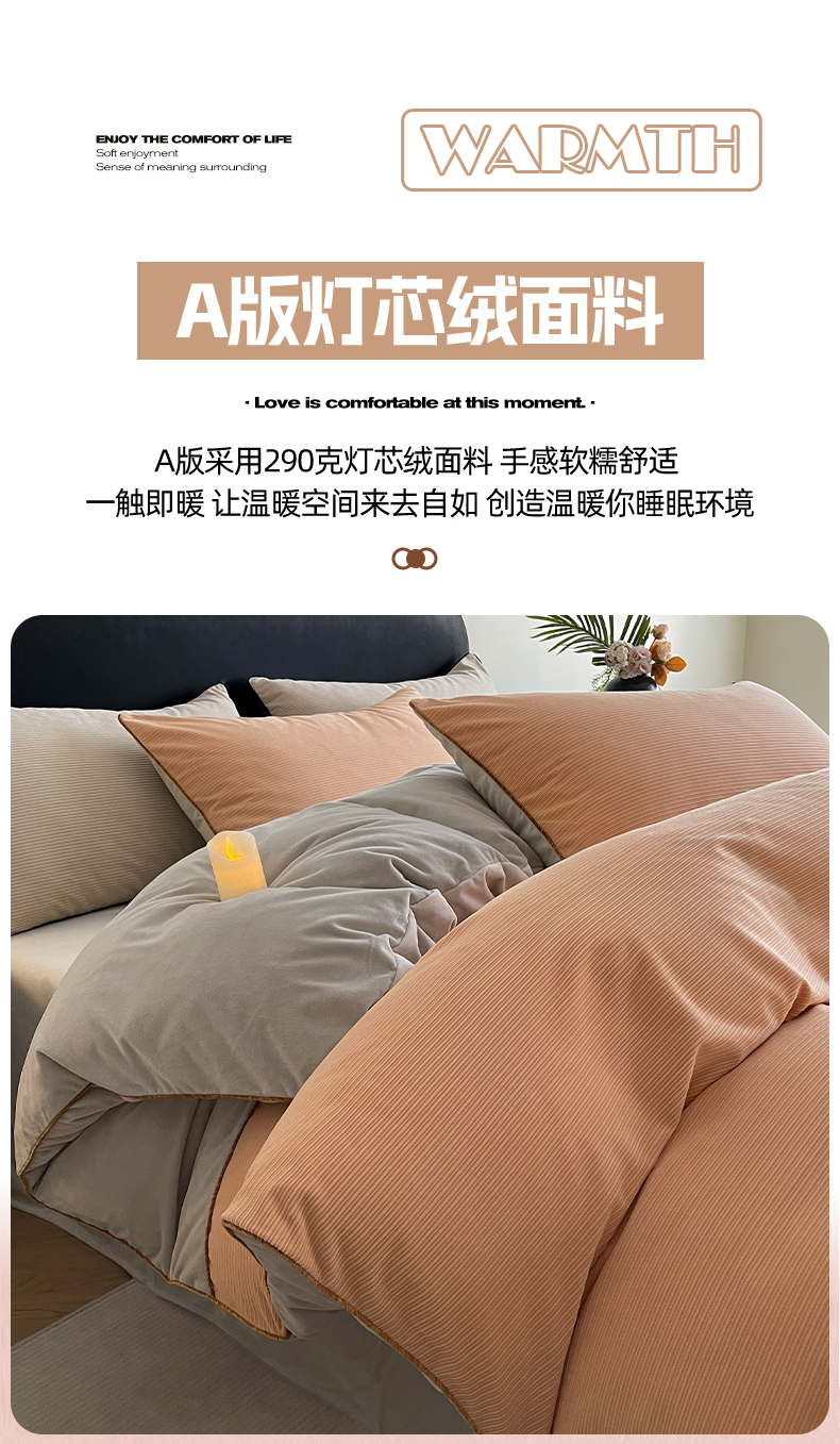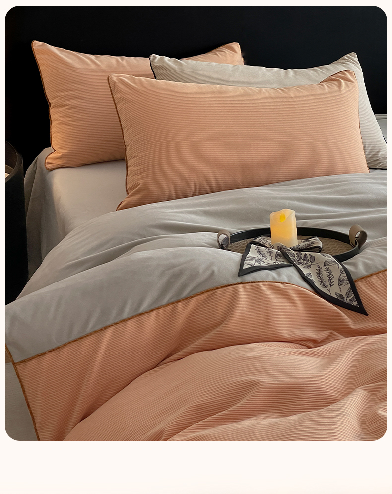商品名称:羚羊语家纺 2025新款280克灯芯绒婴儿绒四件套高级嵌绳拼接款水晶绒宝宝绒牛奶绒床单床笠款三件套-奶芙绒系列 浮光沁橙