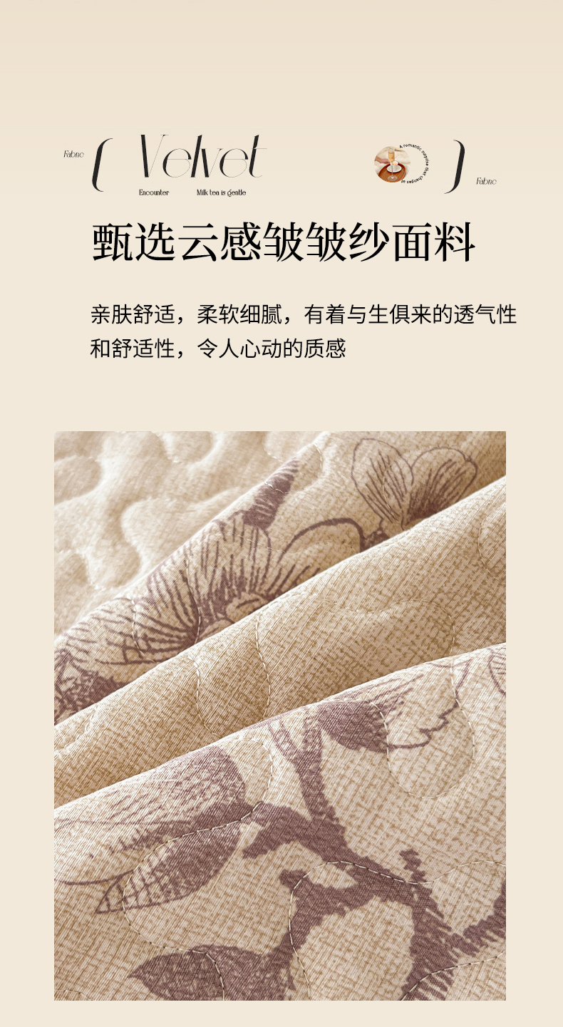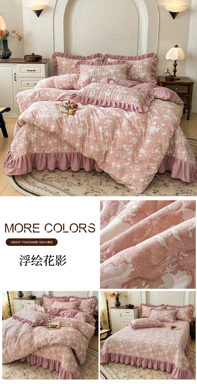 • 91家纺网 家纺一手货源 找家纺 笠裙家纺 2025新款a类加厚夹棉云感水洗棉床盖四件套 浮绘花影