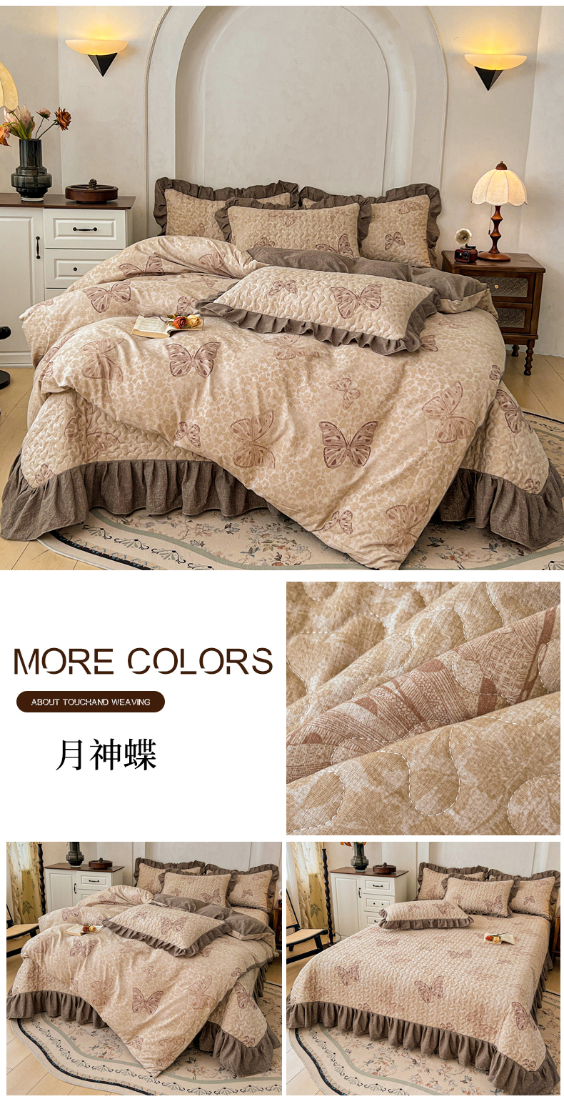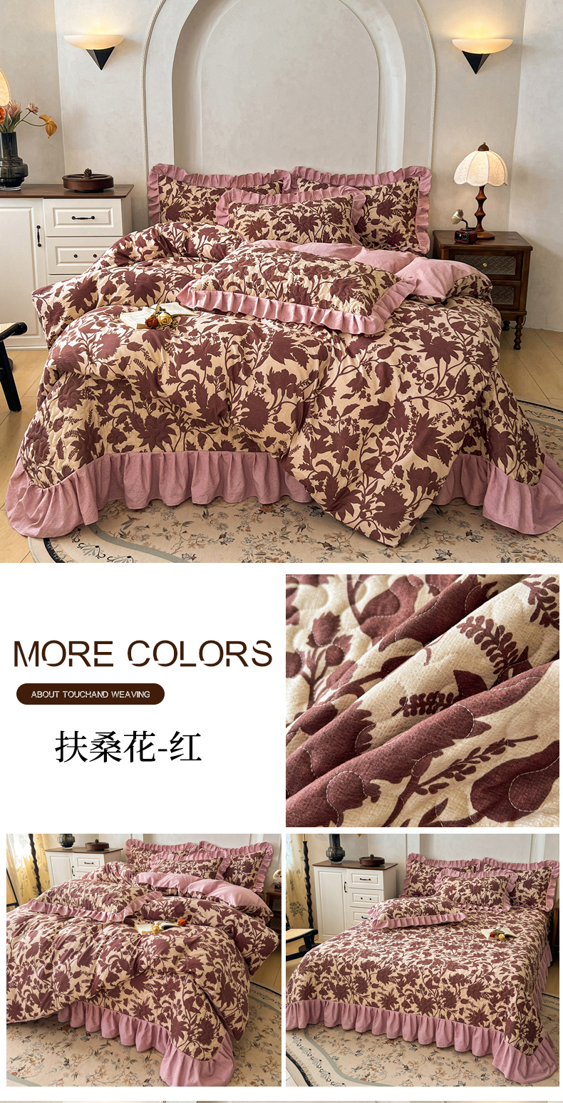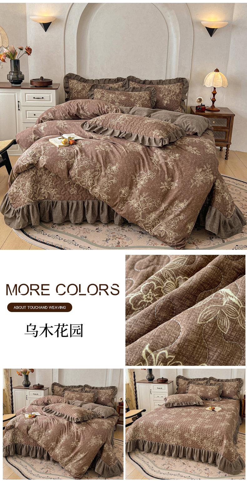 • 91家纺网 家纺一手货源 找家纺 (总)笠裙家纺 2025新款a类加厚夹棉云感水洗棉床盖四件套,云黛紫,茶巷,扶桑花-红,浮绘花影,花田错,兰亭序-米白,乌木花园,月神蝶