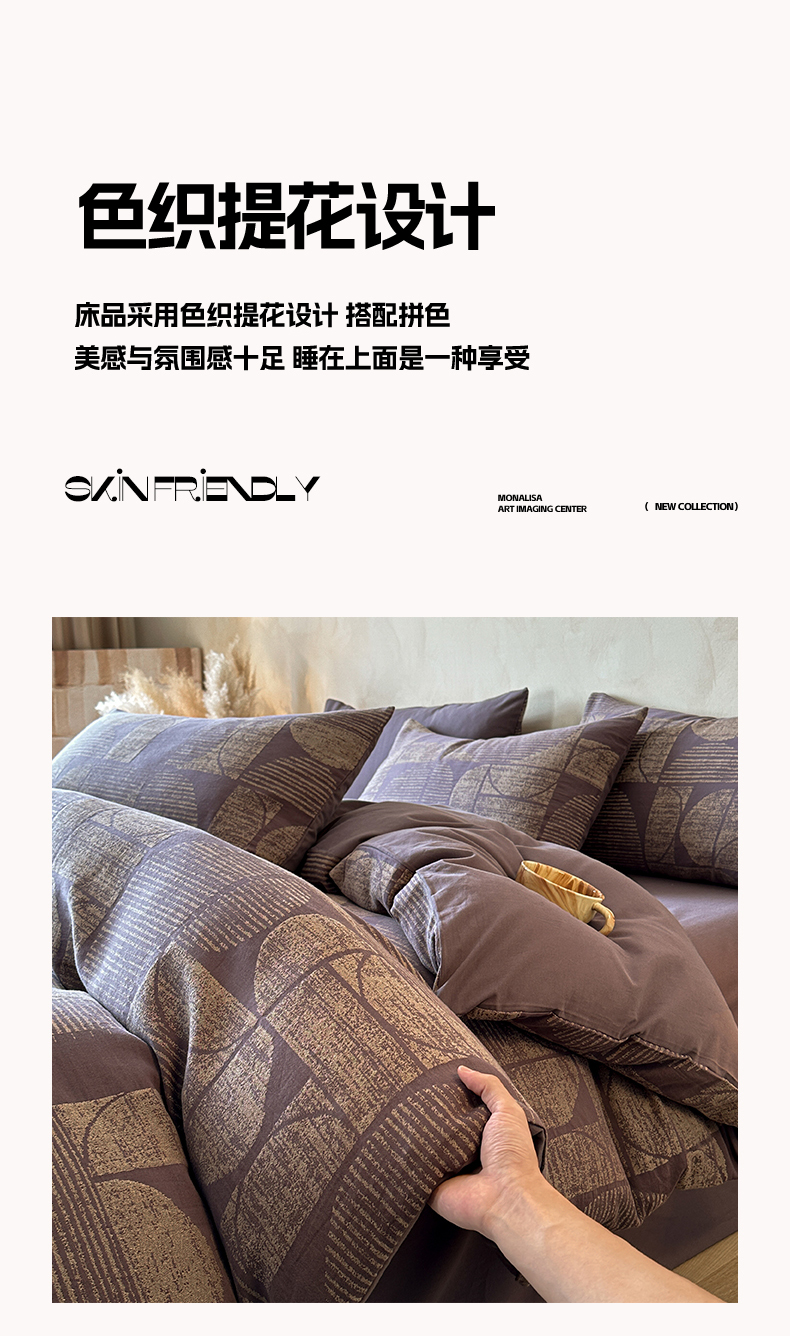 (总)蓝邻家纺 2025年新款全棉色织提花磨毛四件套
