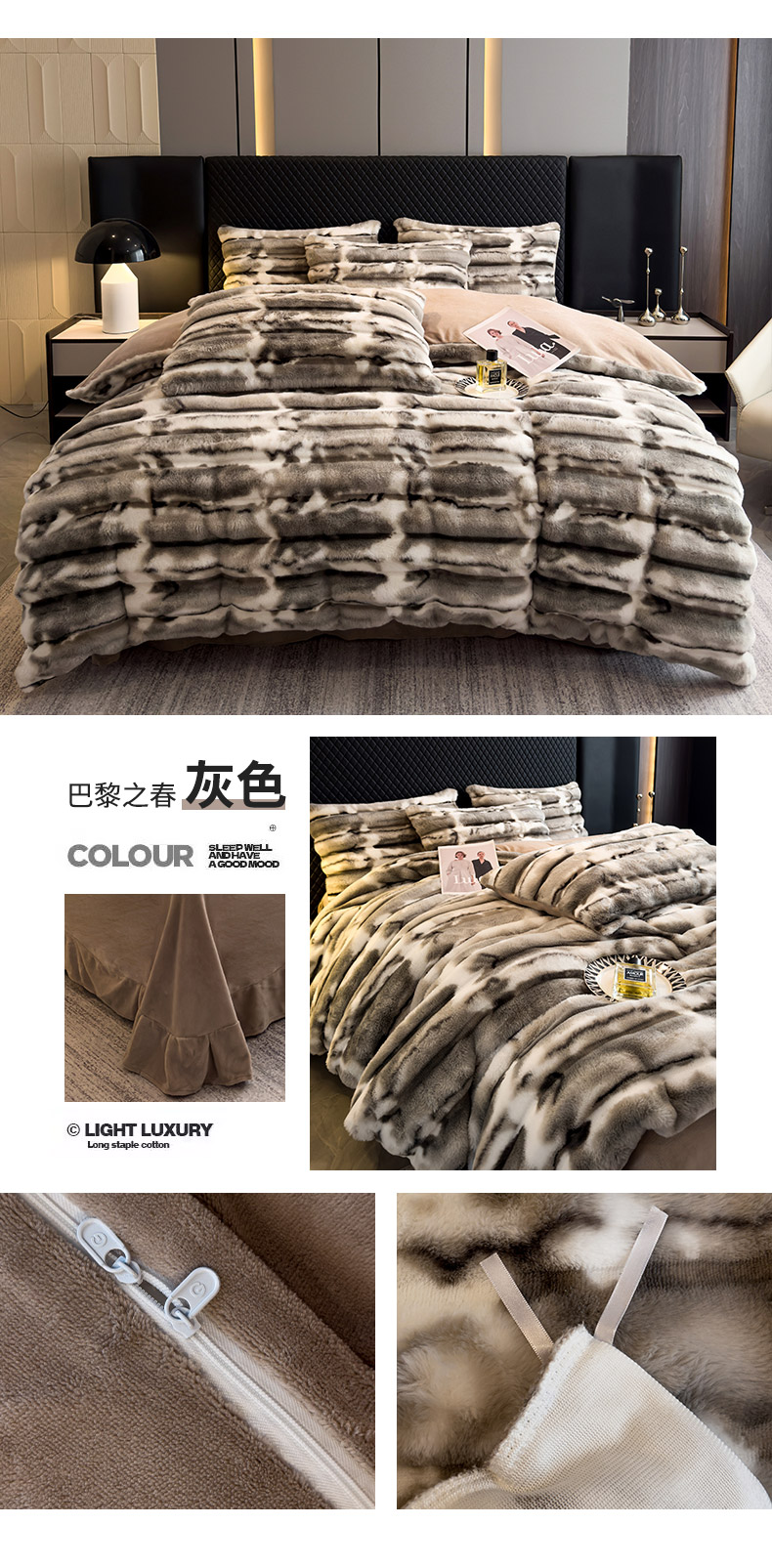 畅畅家纺 2025新款高克重10斤加厚轻奢扎染兔毛绒四件套-巴黎之春 巴黎之春-皮粉