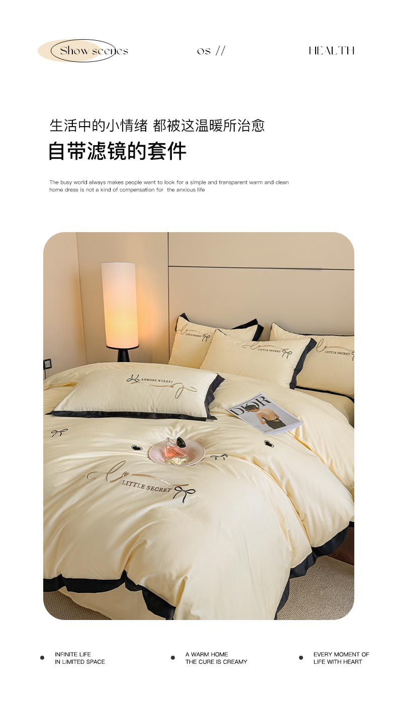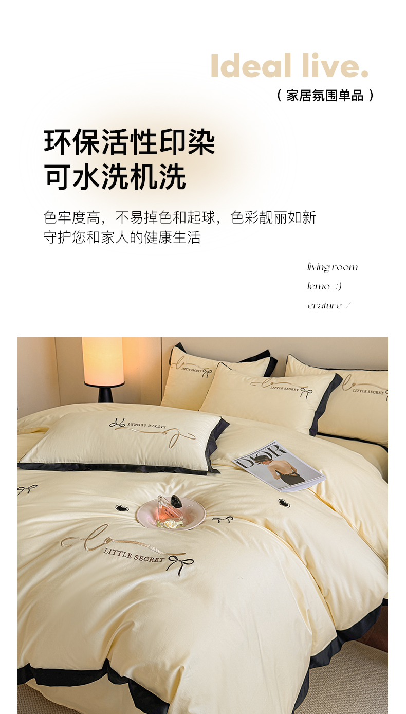 (总)理想家家纺 2025新款纯棉轻奢刺绣四件套-小秘密系列场景二,小秘密 粉,小秘密 黄,小秘密 蓝
