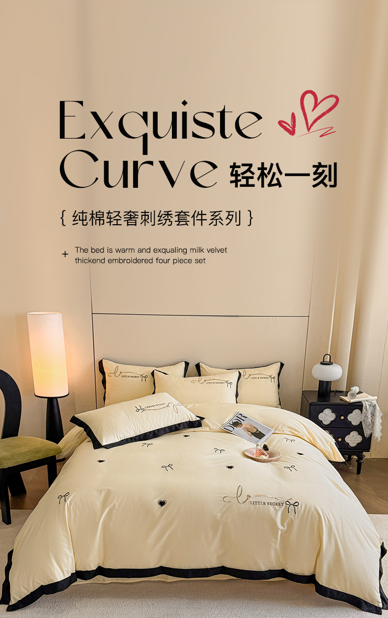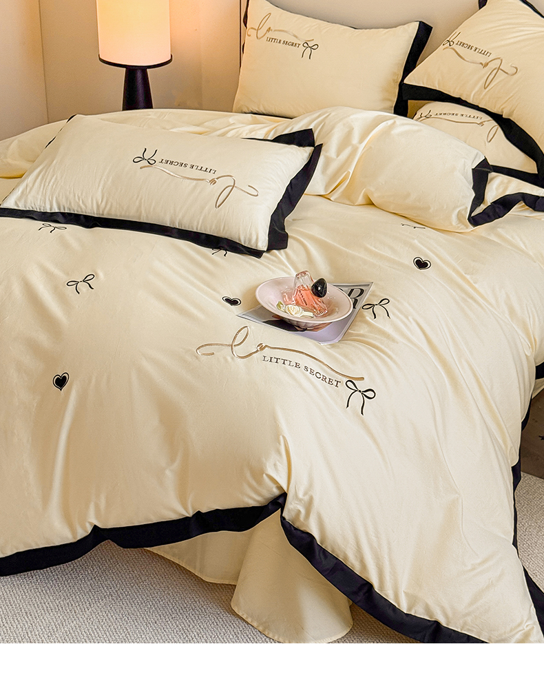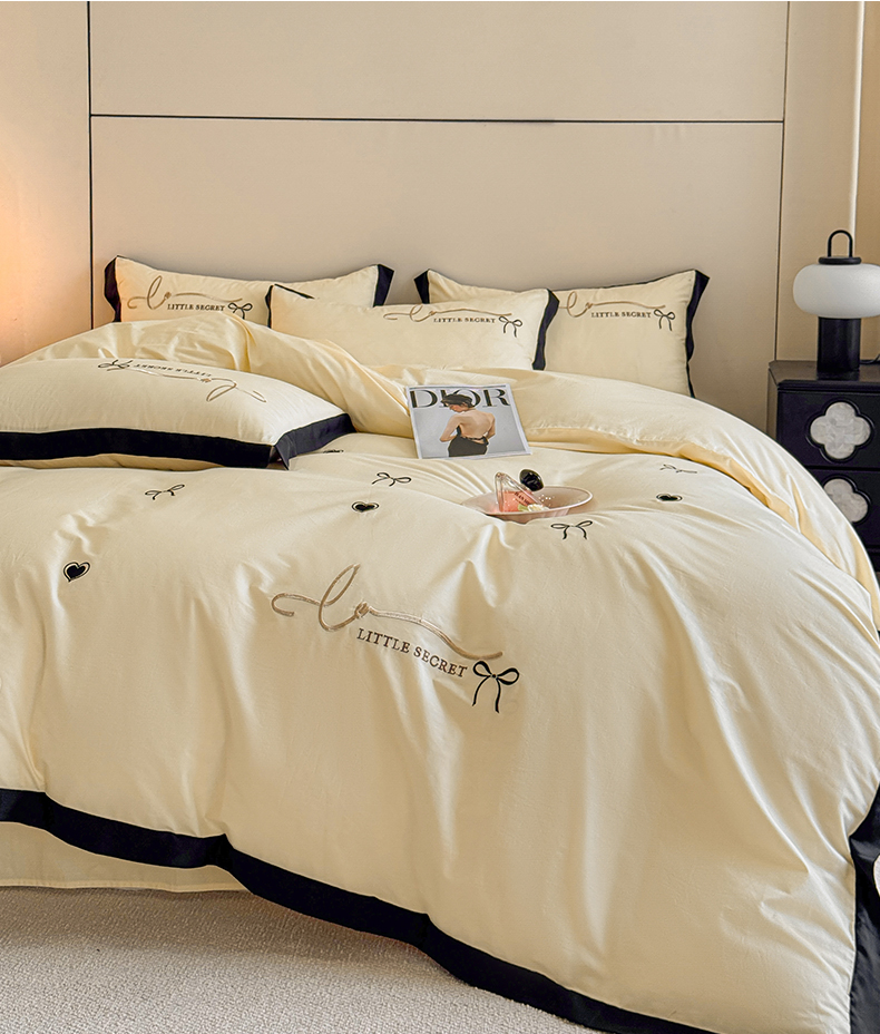 理想家家纺 2025新款纯棉轻奢刺绣四件套-小秘密系列场景二 小秘密 黄