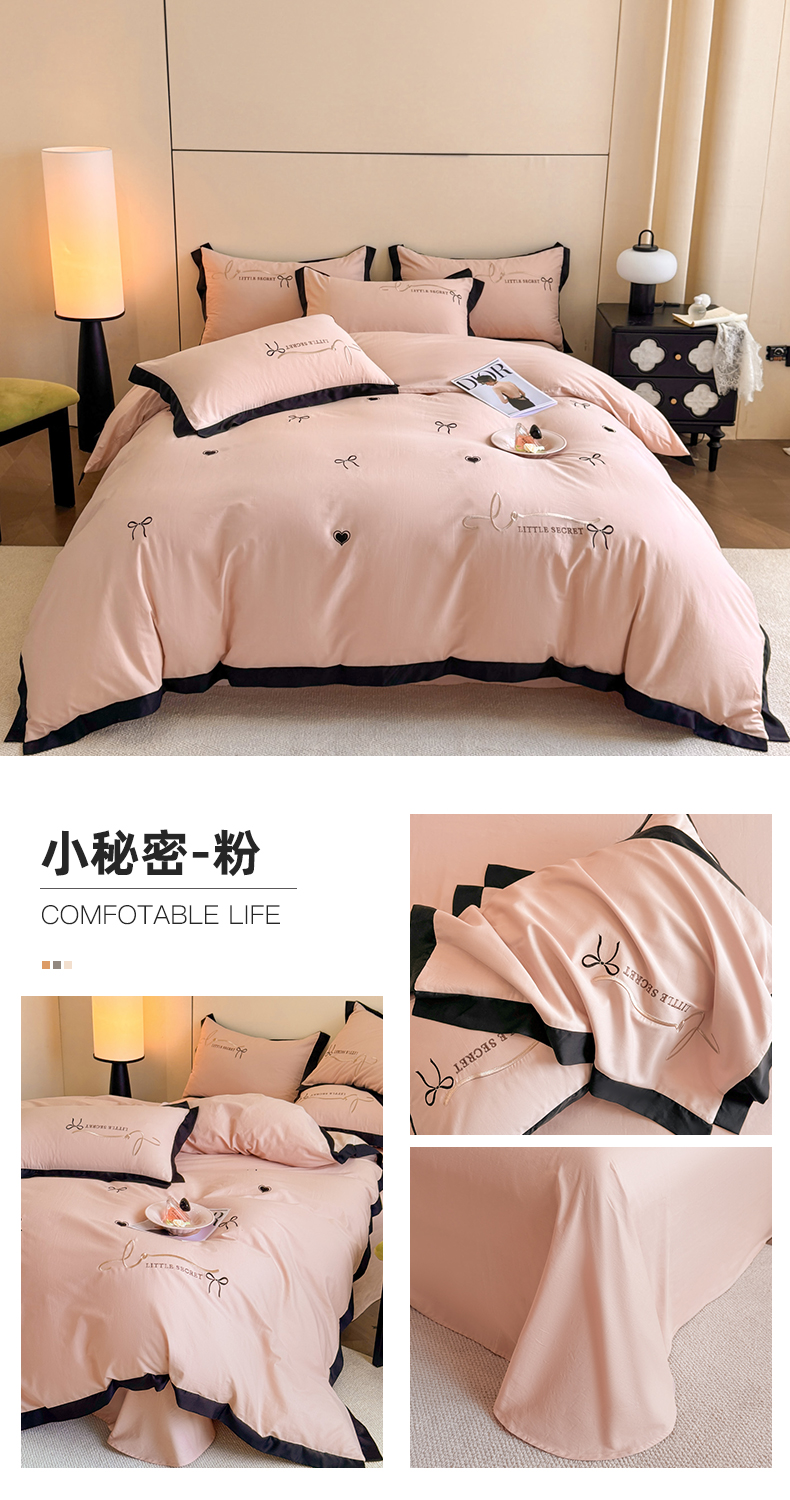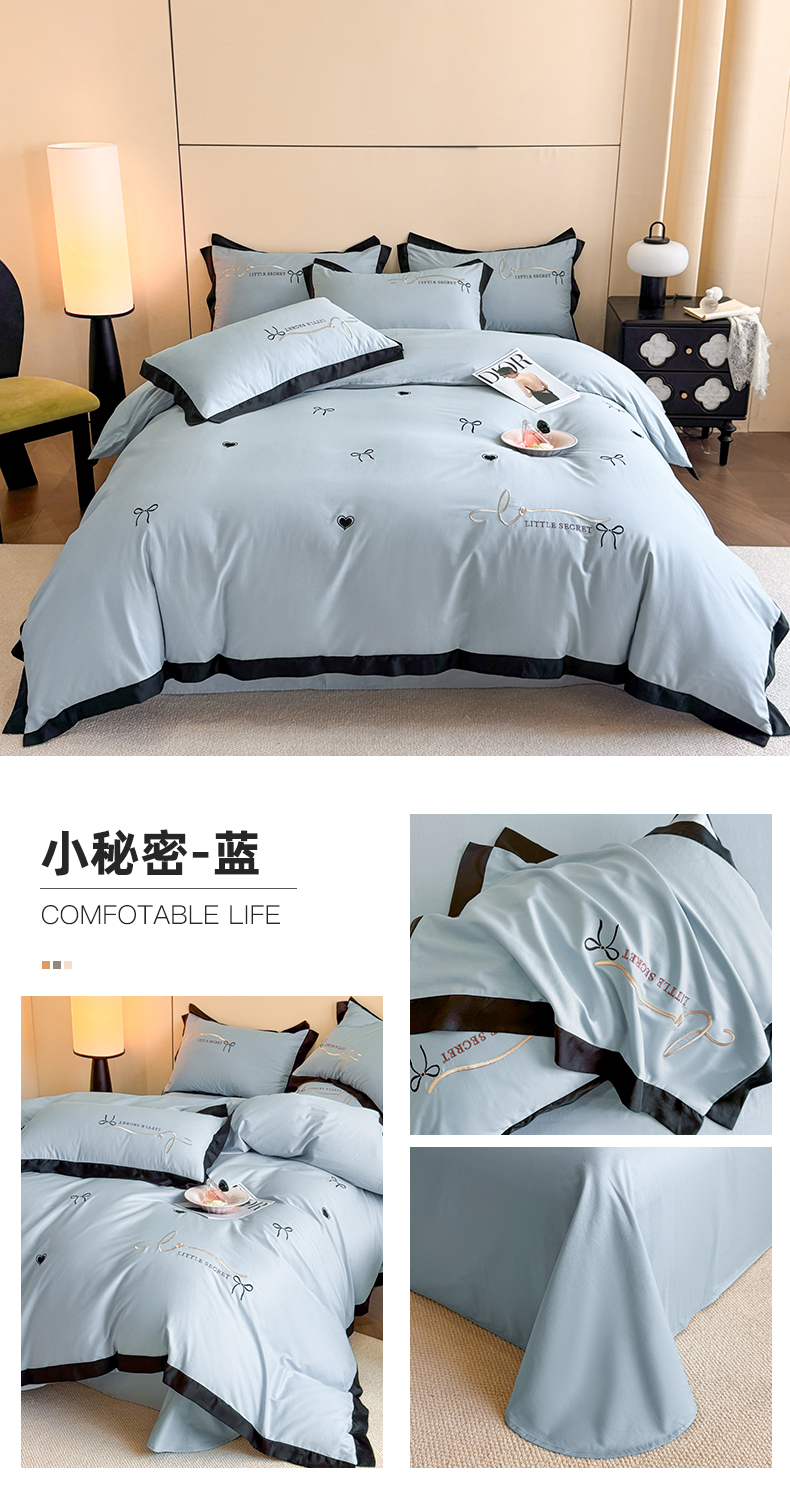 (总)理想家家纺 2025新款纯棉轻奢刺绣四件套-小秘密系列,小秘密-白,小秘密-粉,小秘密-蓝